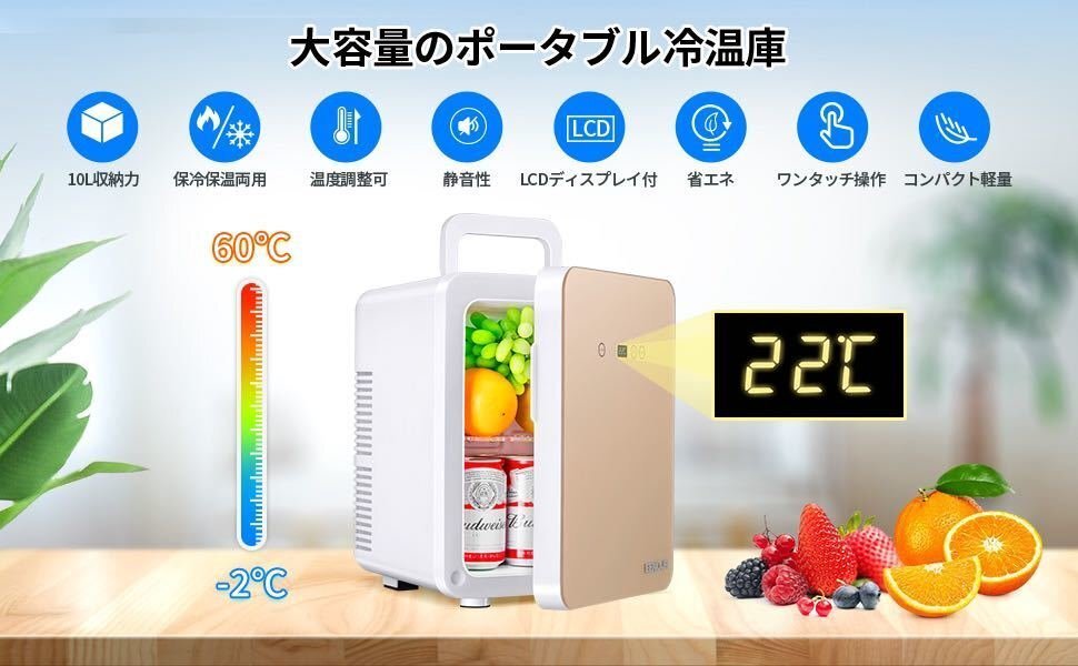 冷温庫 10L 小型 -2℃~60℃ 保温・保冷用 LCD温度表示 ワンタッチ操作 温度調節可 高密度発泡ウレタン採用 ペルチェ式 静音