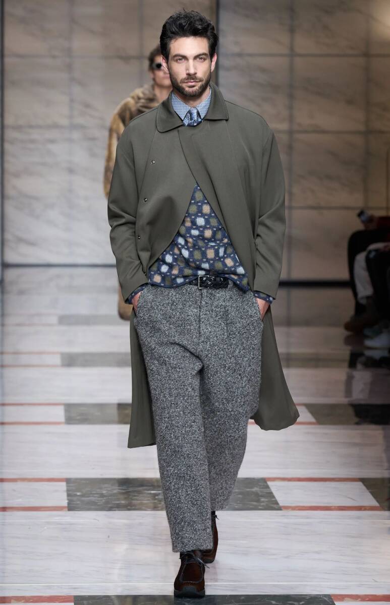 フィッティングに関してご案内します。肩が落ちるオフセットショルダー、胸幅も身幅もかなりたっぷりした作りになっています。したがってフィット感はゆったり。着用時のサイズ感はかなり曖昧です。イタリアサイズ56は日本サイズ3XL相当を想定したサイズです。こちらのコートは普段他ブランドのイタリア56から58をご着用のお客様、日本の3XLサイズから4XLサイズをご着用のお客様に、自然なゆとりのあるナチュラルフィッティングで快適スタイリッシュにご着用いただけます。