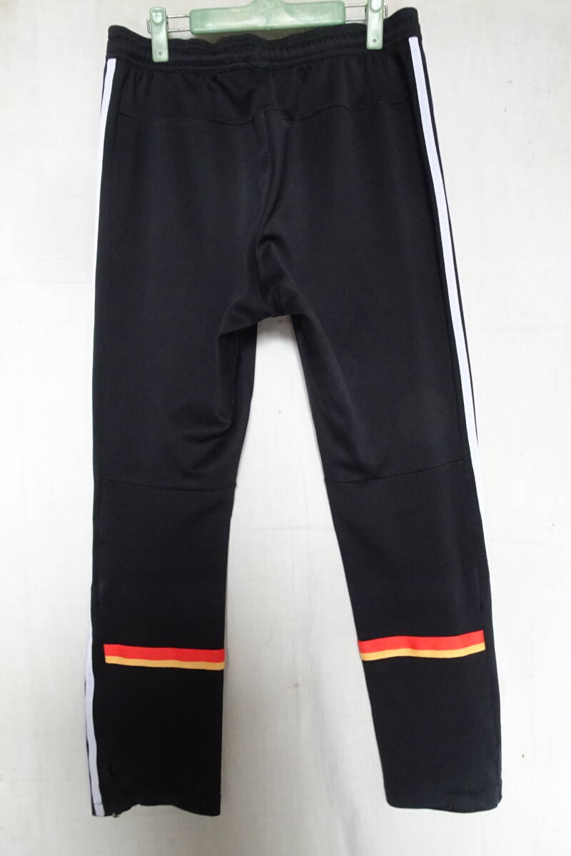 adidas/アディダス/トラック長パンツ/ジャージ素材/脇白3本ラインテープ/ひざ裏赤黄ラインテープ/スポーツ/黒/ブラック/Lサイズ(9/26R7)