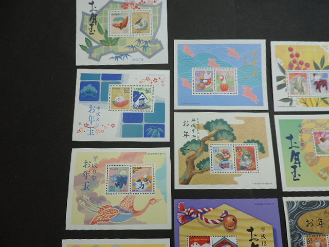 ★お年玉 年賀切手 10年分★  平成7年用~16年用・10年分  80円・50円×小型シート10枚 1300円分  新品・未使用