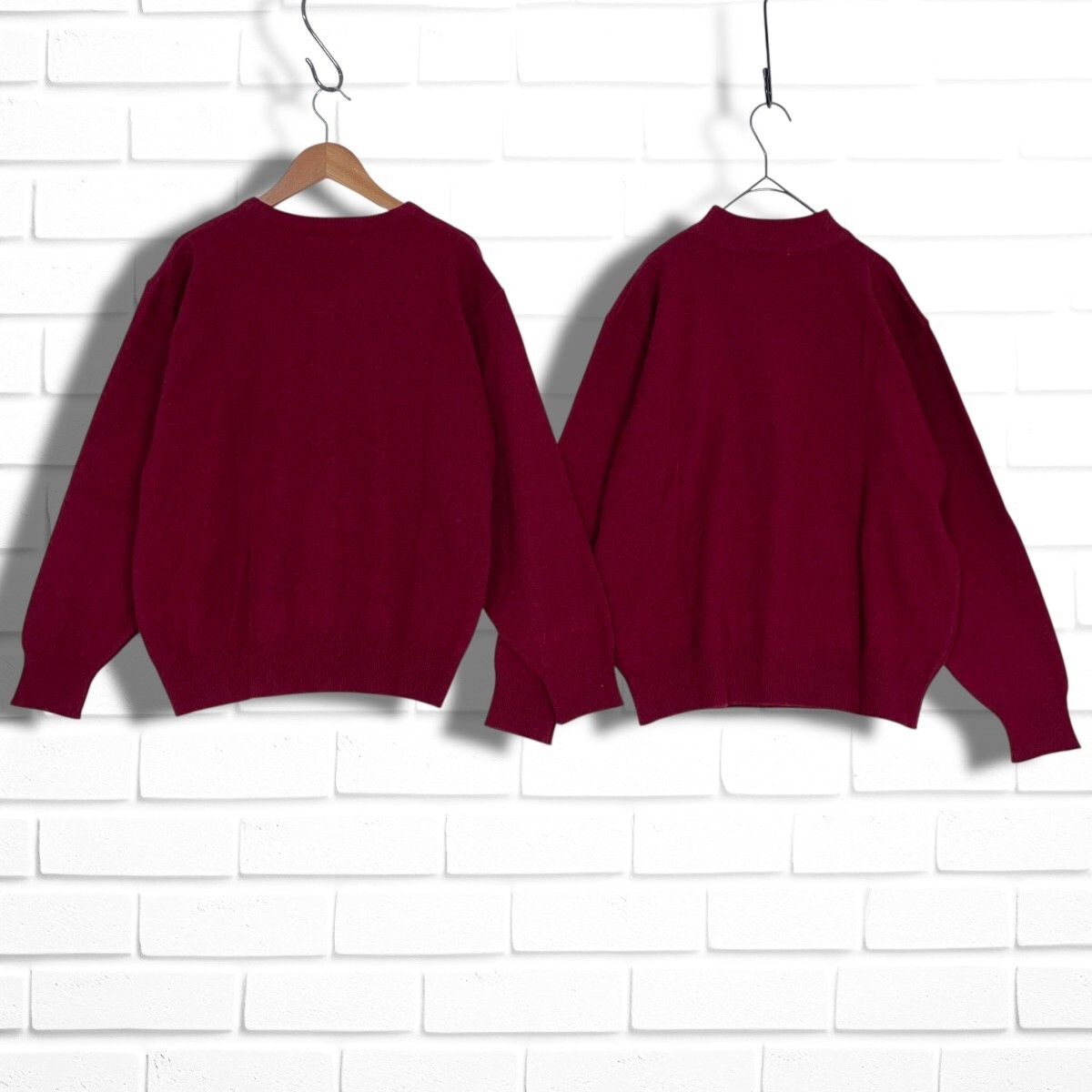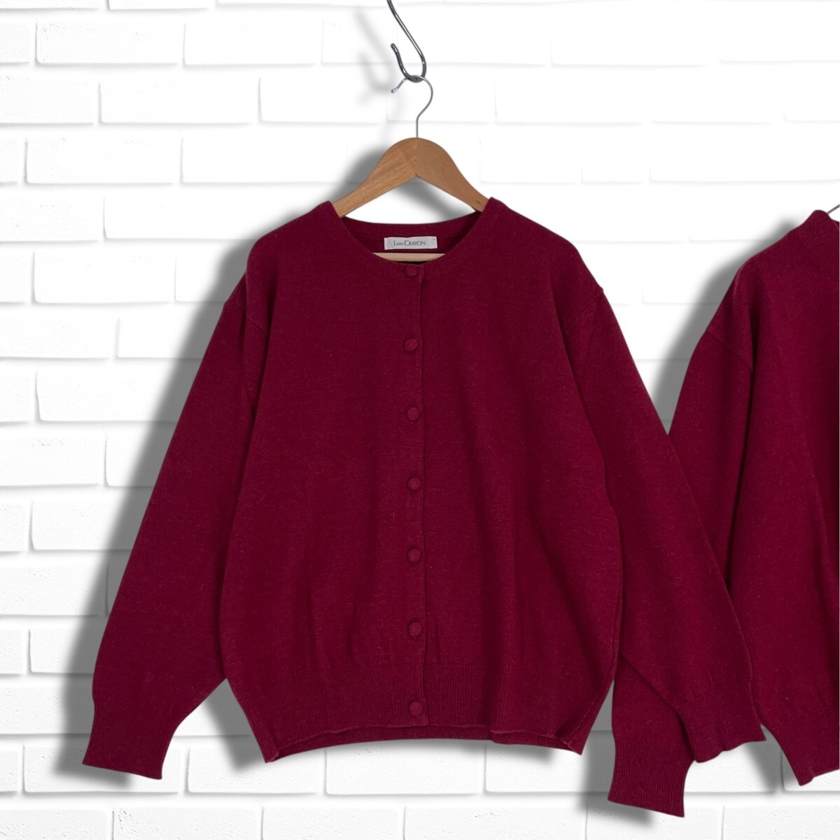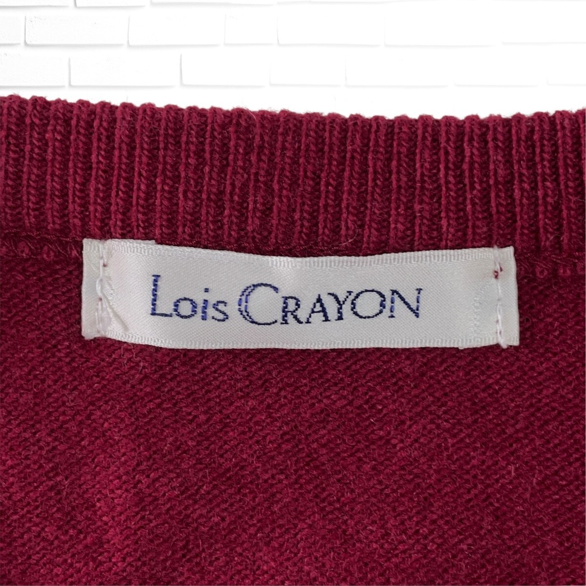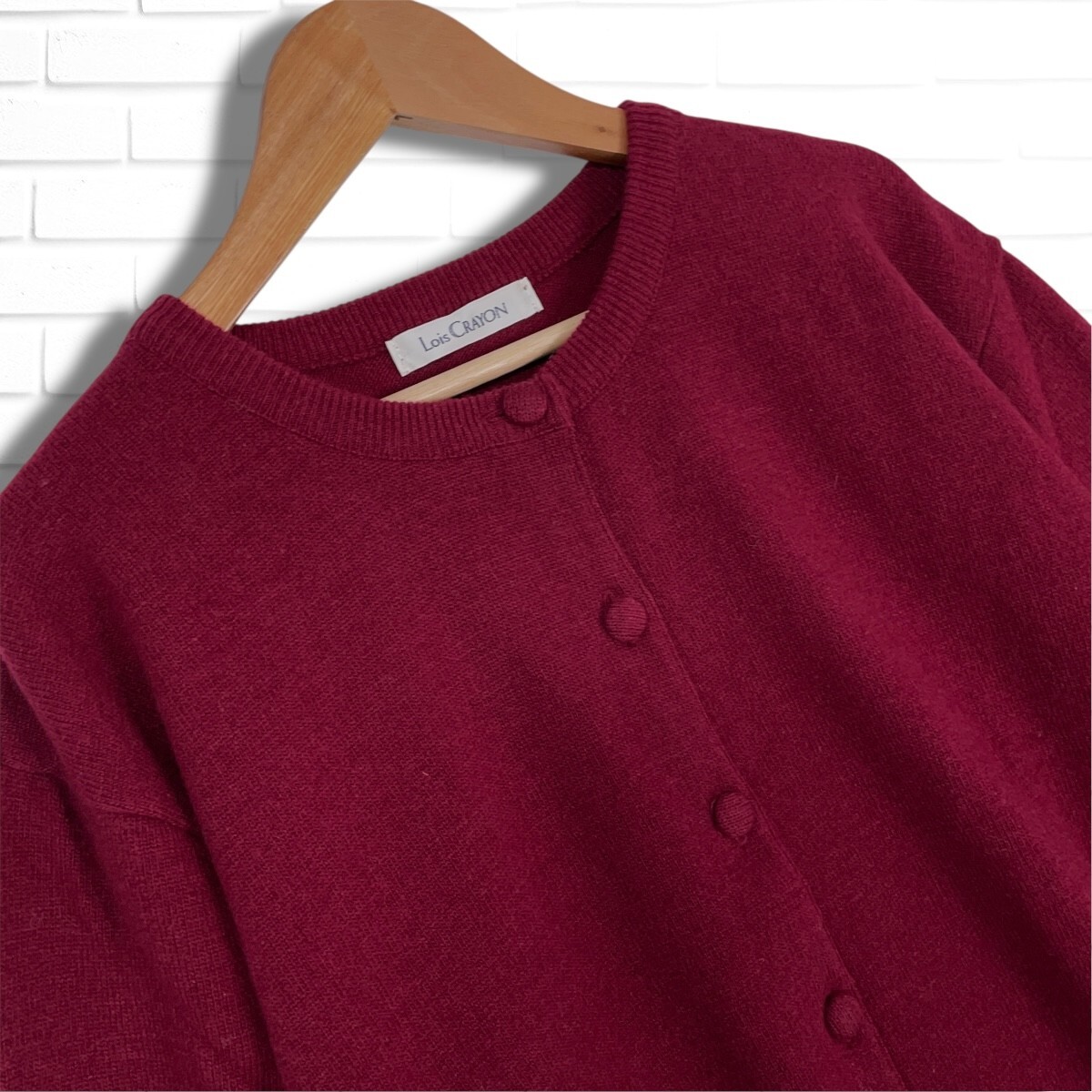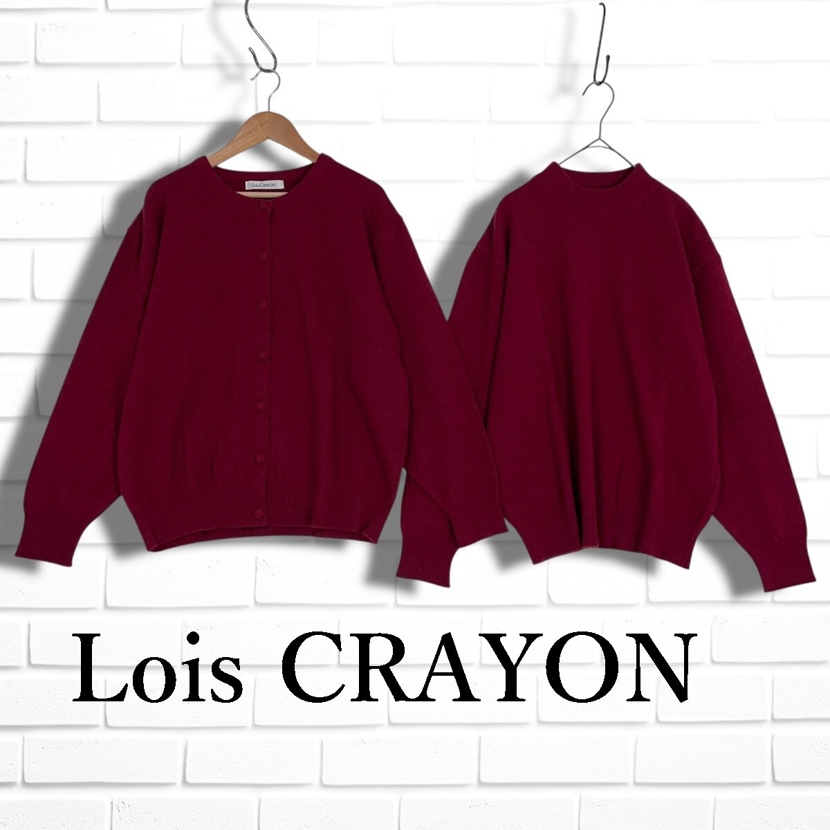 ◆美品◆ Lois CRAYON ロイスクレヨン ウール ニット ゆったり♪ アンサンブル 長袖 カーディガン + セーター ボルドー系 レディース M ◆日本製 送料無料◆ 4155I◇