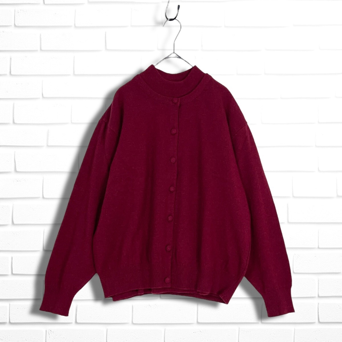 美品 Lois CRAYON ロイスクレヨン ウール ニット ゆったり アンサンブル 長袖 カーディガン + セーター ボルドー系 レディース M 4155I◇