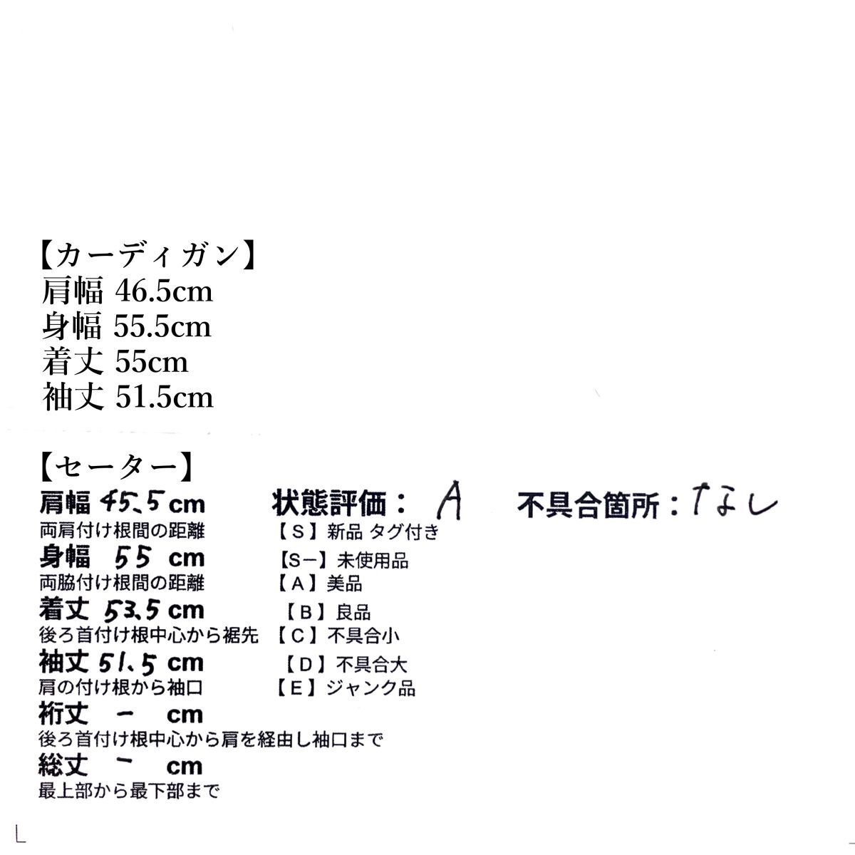 S-・・・未使用品