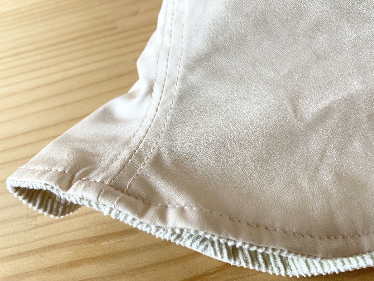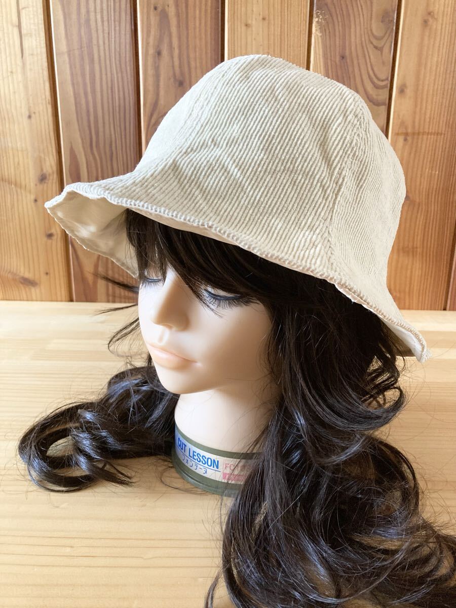 コーデュロイ生地とレザー調(レザーではありません)の帽子です。