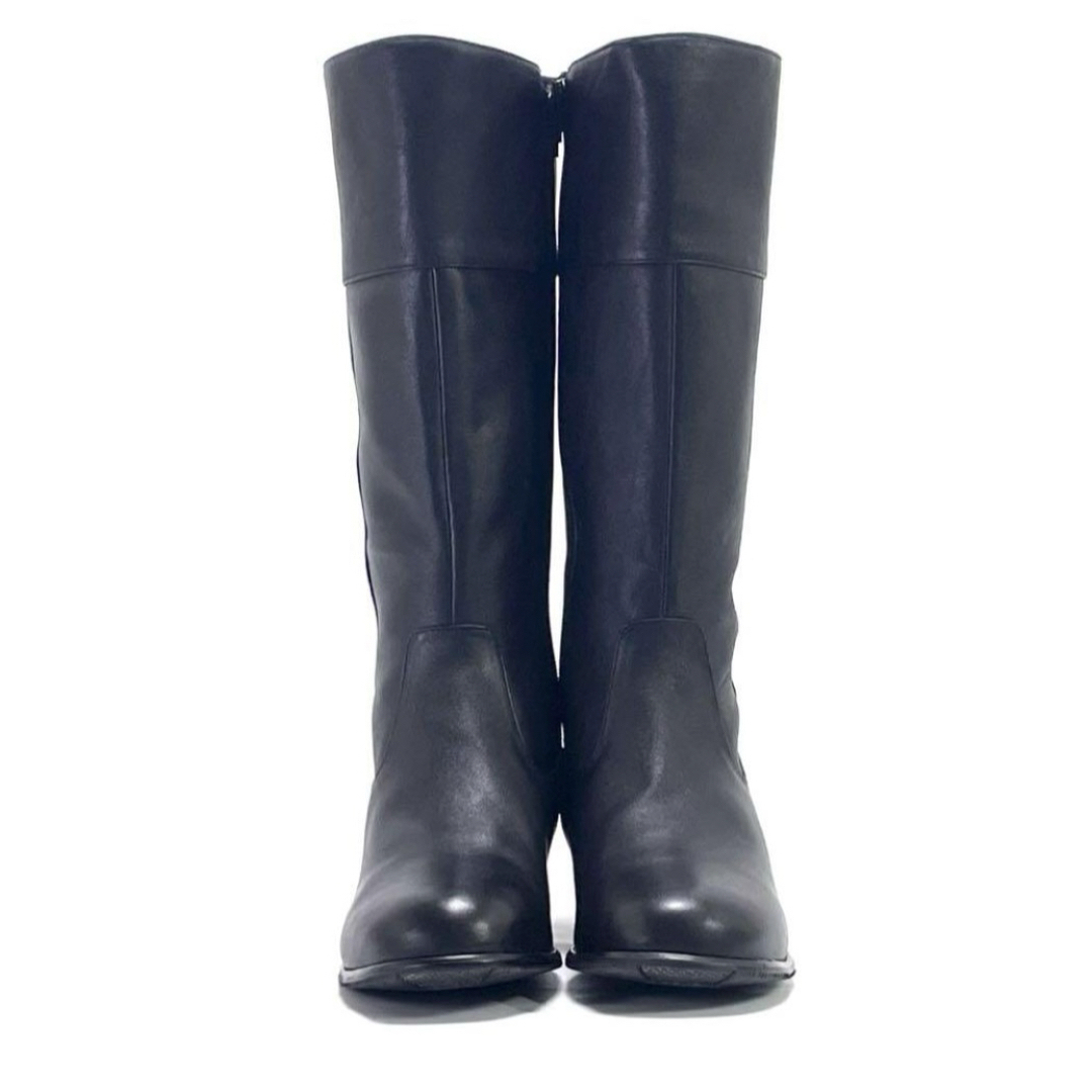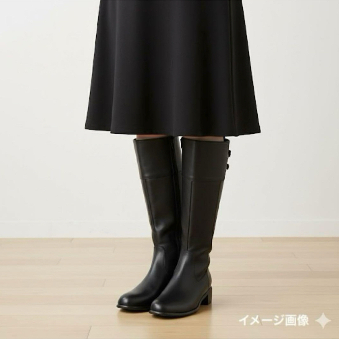 このブーツは。膝下までを覆うIラインのシルエットが脚のラインをまっすぐ、細長く見せてくれる効果が期待できる【美シルエット】の商品です。