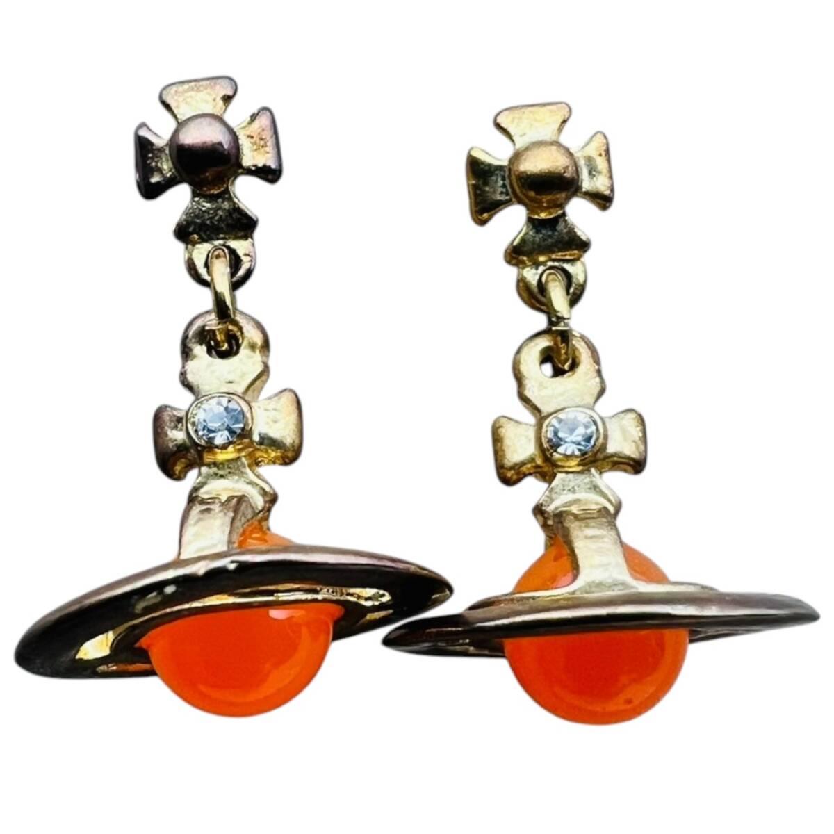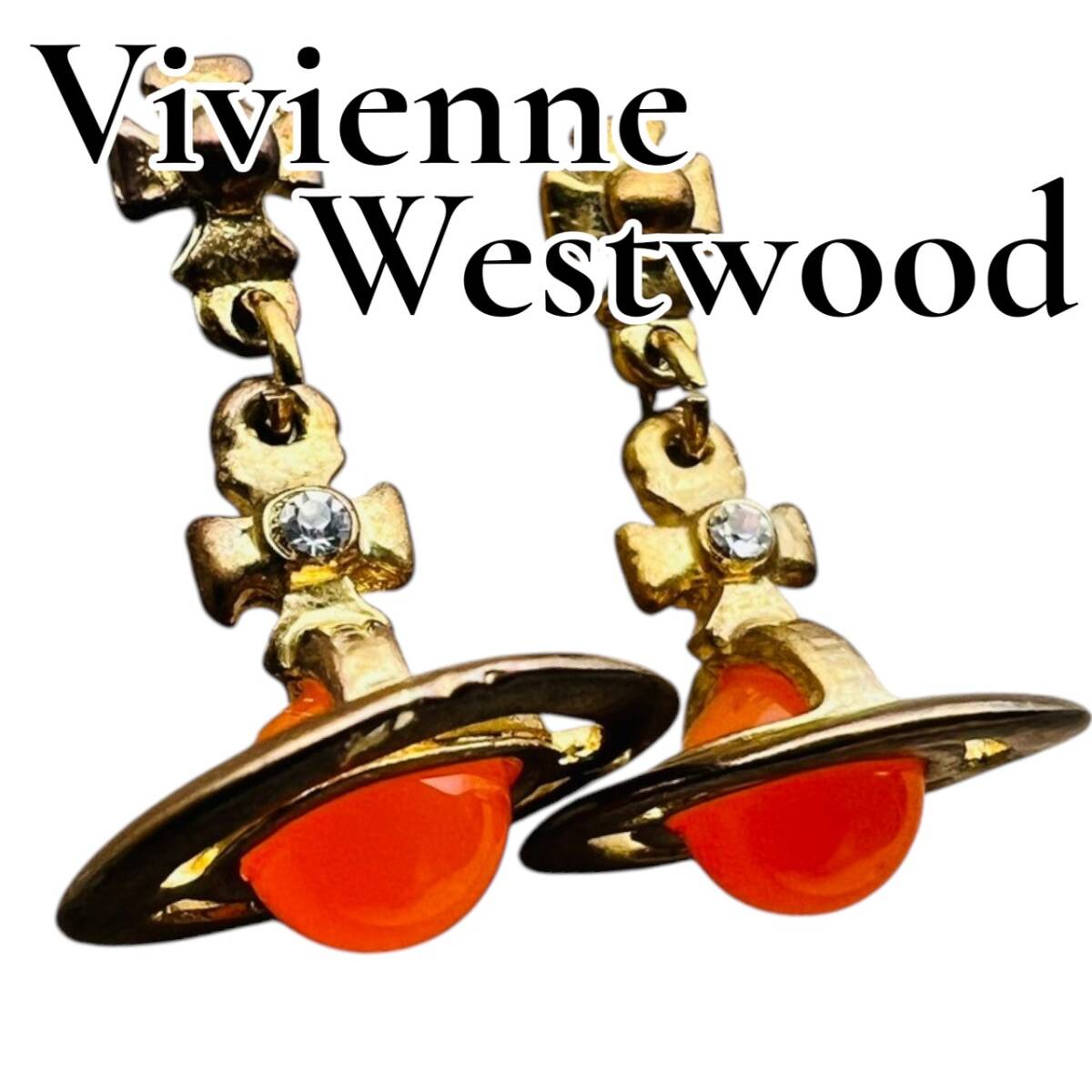 【良品】Vivienne Westwood ピアス オレンジ ストーン ゴールド |