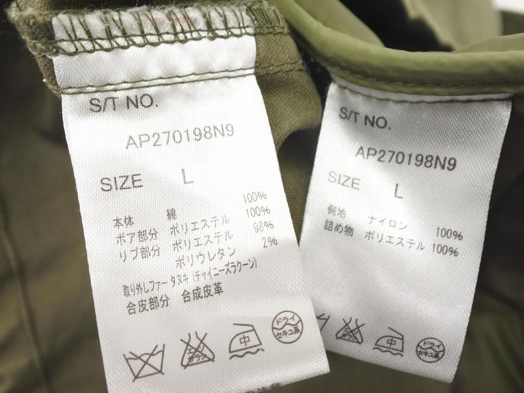 商品の状態 | 取り外し:ライナー ファー 欠品:ファー 前面・身ごろ左上にスレがございます。 前面・スソ中央にスレがございます。 後ろ面・身ごろ中央にスレがございます。 (各箇所のヨゴレやダメージに関しましては、写真をご参照ください) 他に状態の気になる箇所はございません。 全体的に見ると良い状態のお品です。 (当方管理番号:rsfi100577-t) | ||||||||||