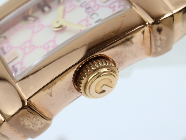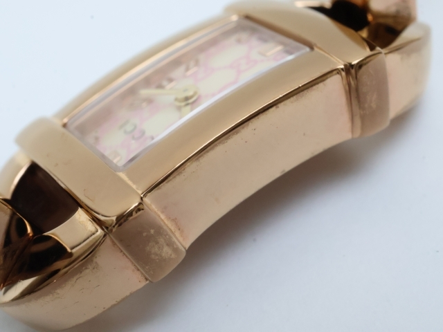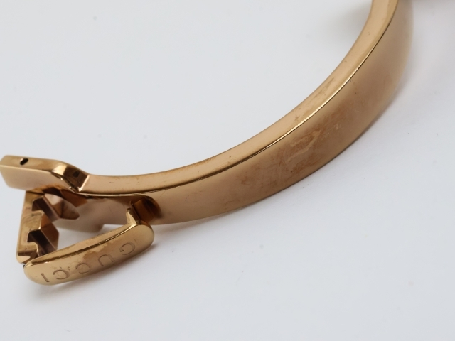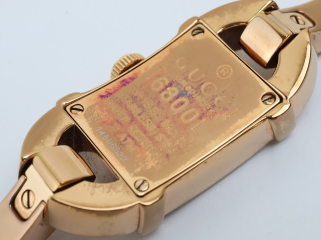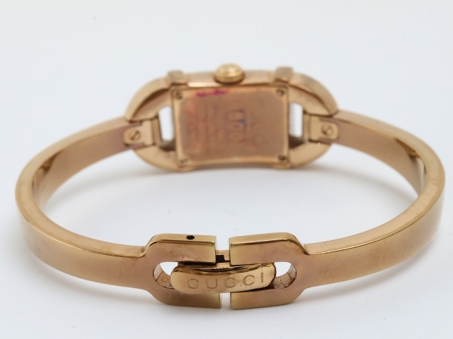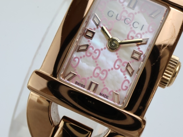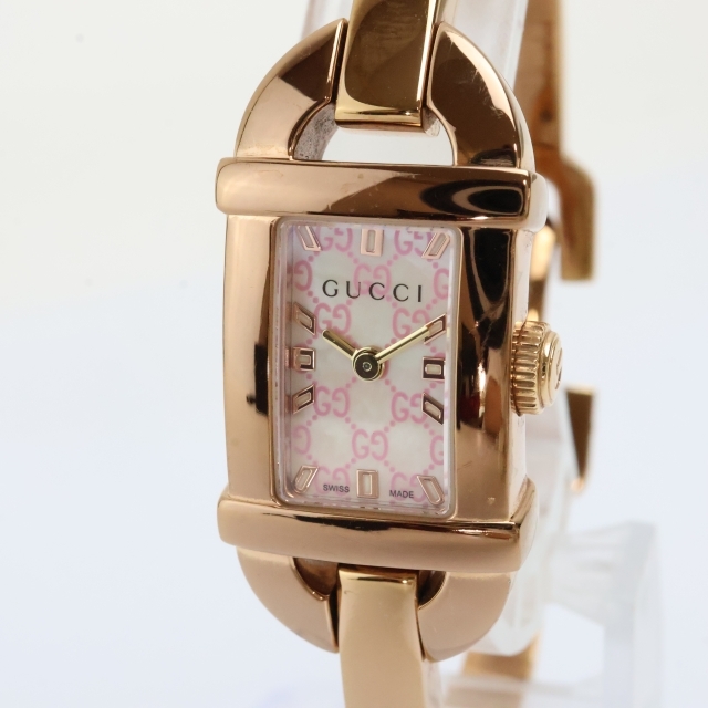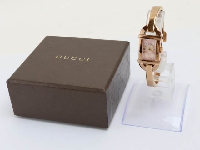 | 2509-628 QZ グッチ 6800L クオーツ 腕時計 GUCCI シェル文字盤 ブロンズカラー バングルブレス 箱有り | |||||||
