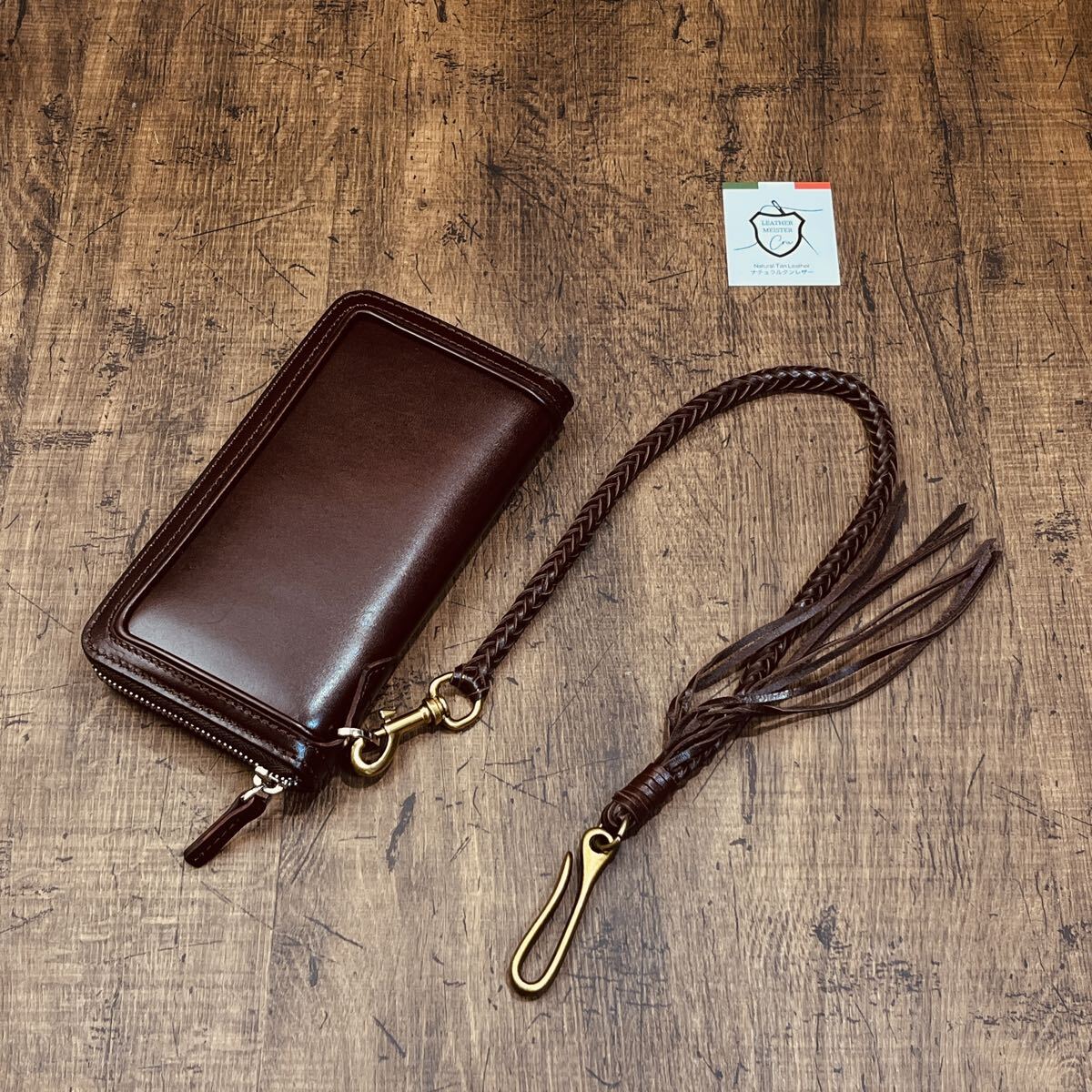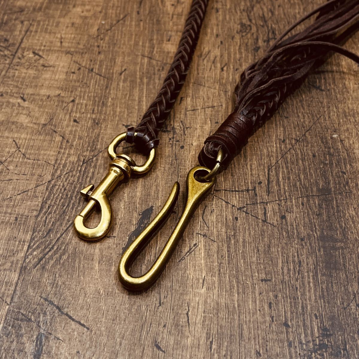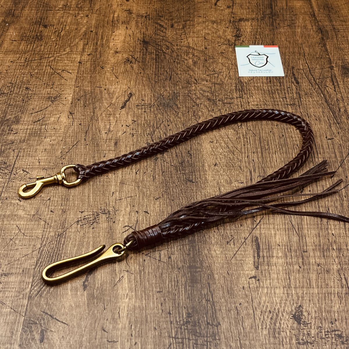 新品 ウォレットチェーン 本革 サドルレザー ウォレットロープ 手編み バイカー レザーウォレットロープ 長財布 メンズ