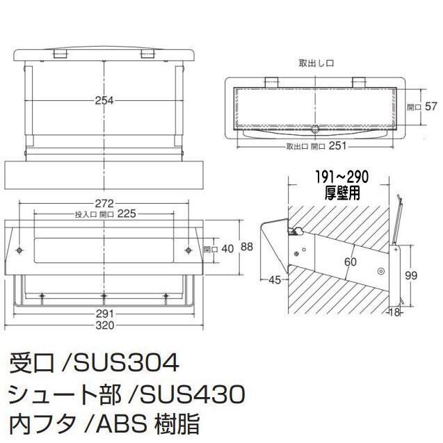 未使用保管品です。 元箱ありません。 外観多少の擦り傷あります。 投函口の幅は225mmです。 厚壁用191mm~290mm 発送は愛知県からゆうパック80サイズです。