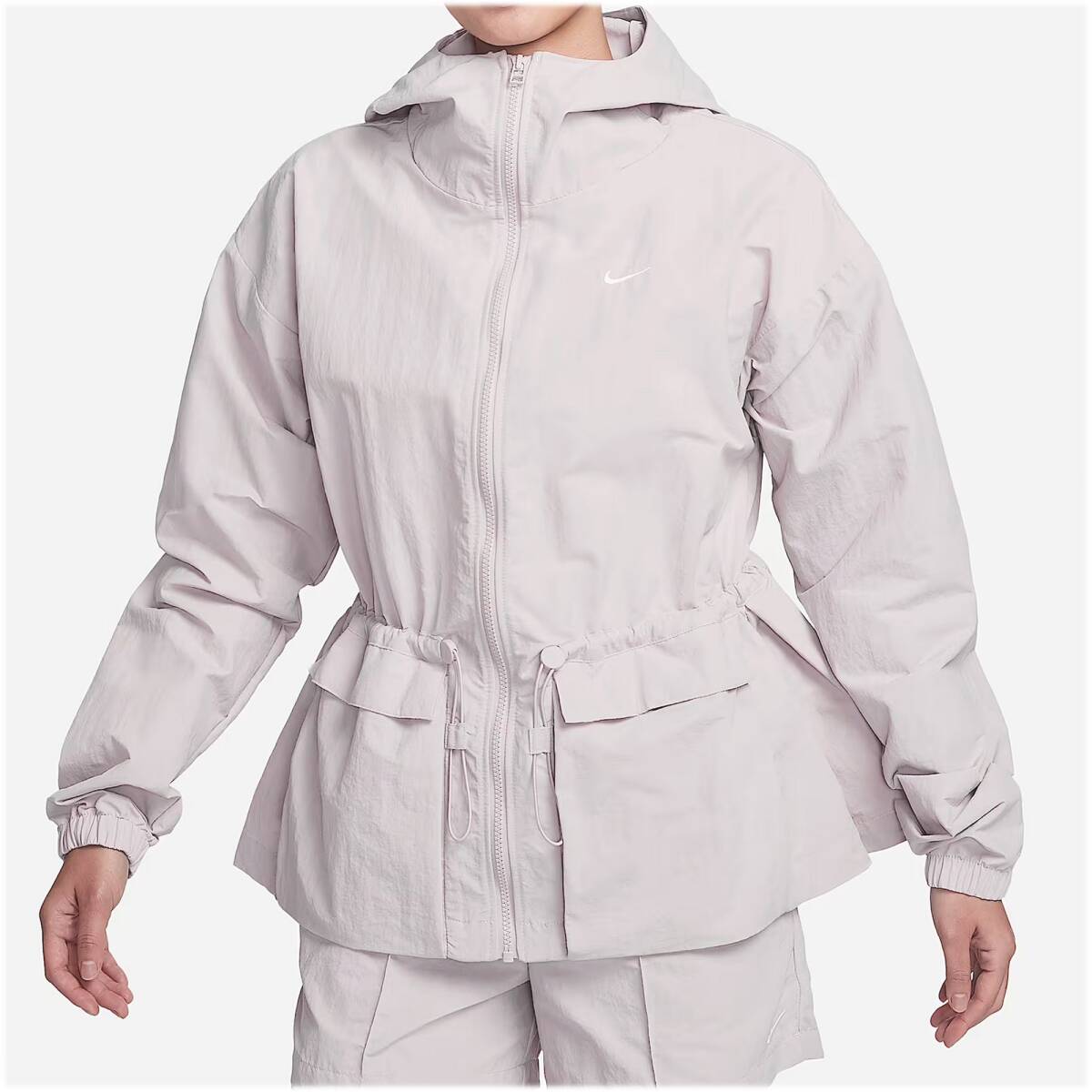 新品未使用品ですシンプルさと機能性を念頭に置いてデザインされたこのジャケットは、ウエストを絞ってオーダーメイドのようにフィットさせることも、緩めて重ね着しやすくすることも可能。さらに、シワ加工を施した素材に撥水コーティングをしているので、雨への備えも万全。スタイリッシュにカバーするために必要なものがすべて揃っています。バンジートグルでフィット感を簡単に調節可能。軽くて耐久性に優れた、シワ感のあるマットなナイロン素材。撥水加工仕上げにより、小雨が降ってもさらりとした状態をキープ。面ファスナー付きのフラップポケットは、小物の収納に便利。刺繍のスウッシュロゴ伸縮性のある裾フルジッパーナイロン100%洗濯機洗い可能表示カラー: プラチナムバイオレット/セイル