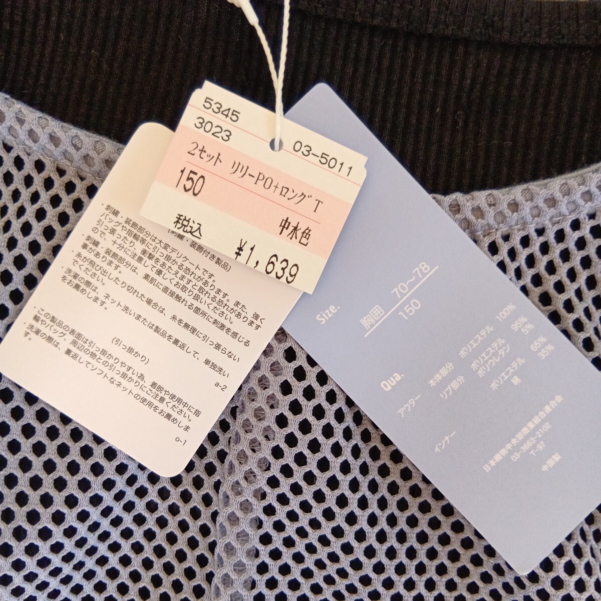 女児 ガールズ 網 トップスへそだしショート丈 サイズ150サイズ  黒xグレイ 長袖