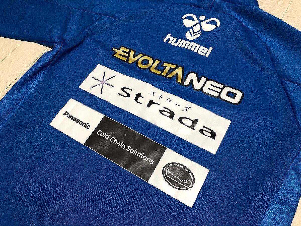 胸に“ダイセル”“ロート製薬”、右腕に“永田醸造機械”、左腕に“平成医療学園”“大建工業”、背中には“乾電池エボルタNEO”“ストラーダ”“コールドチェーンソリューションズ”のスポンサーが入っております。