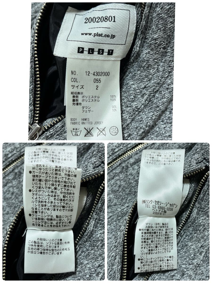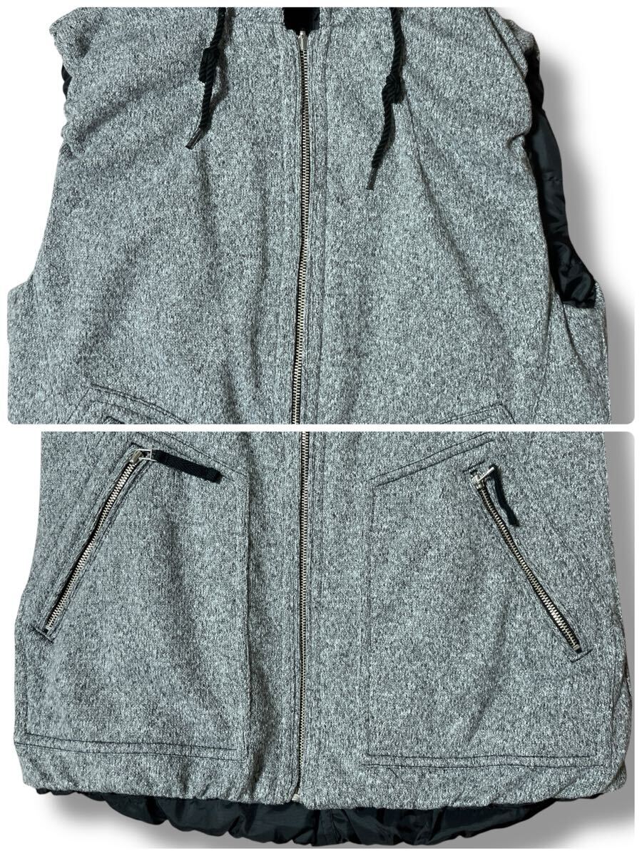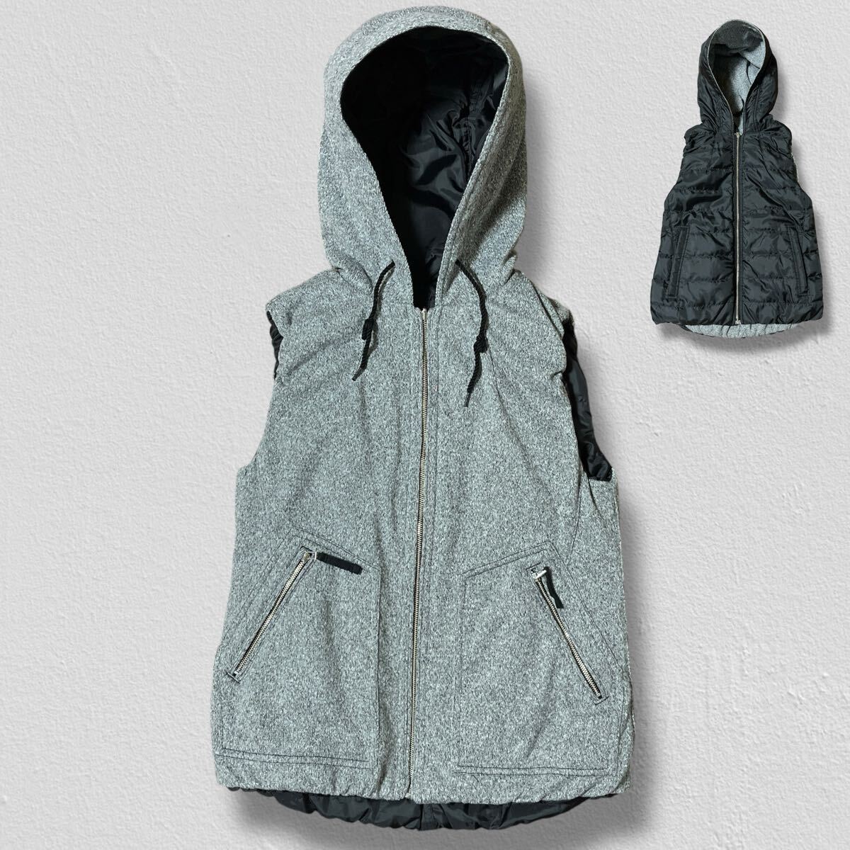 PLST フーディーリバーシブルジップアップダウンベスト グレー×ブラック サイズ2●洗濯プレス済● プラステ 2WAY ベスト ダウン 古着/670