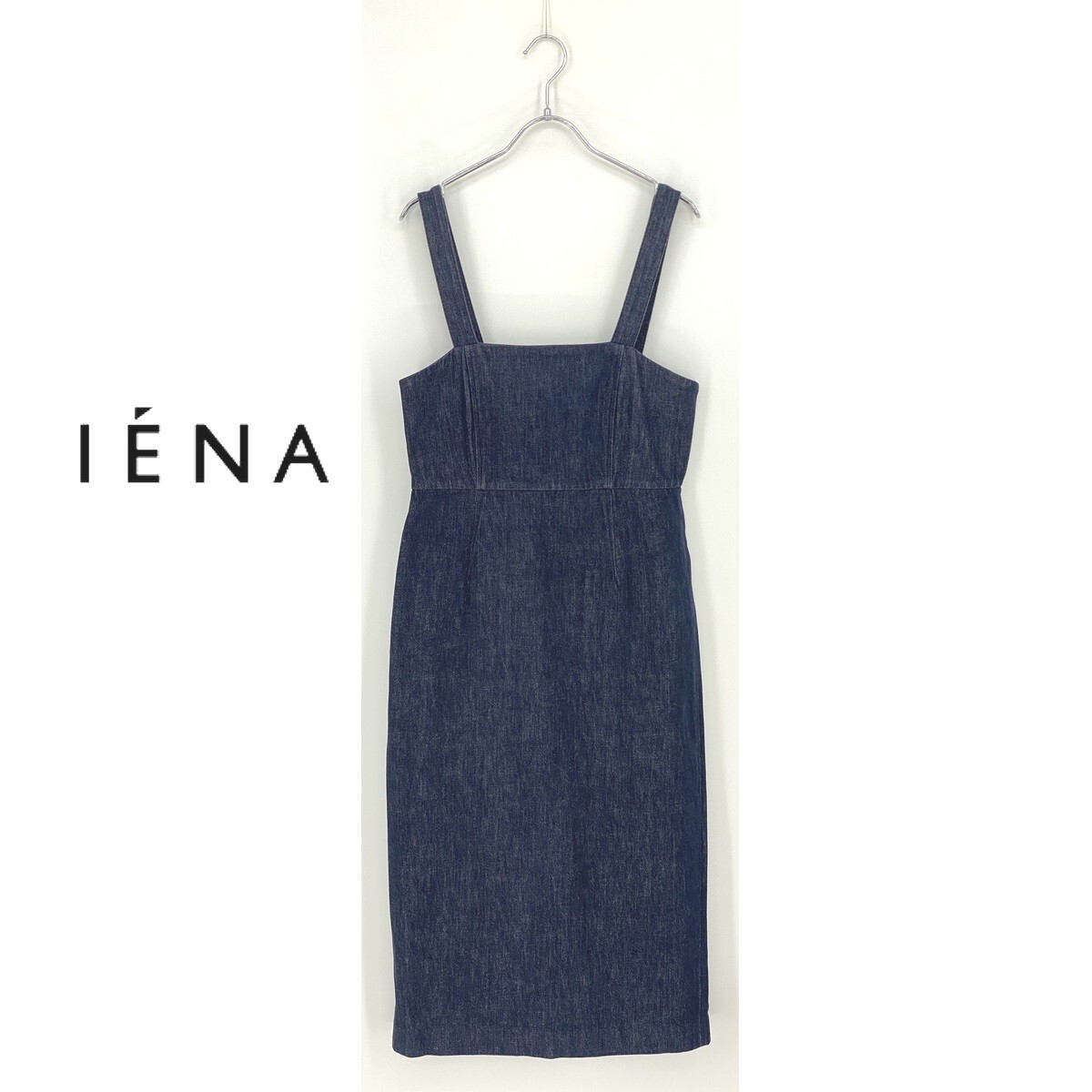B0530/極美品 IENA イエナ コットン タイト ノースリーブ ビスチェ デニム ロング ミモレ丈 ワンピース 38 Mインディゴ 青 レディース