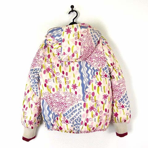 ツモリチサト ダウンジャケット リバーシブル 絹 シルク ナイロン 花柄 総柄 フード ジップアップ S 1 アイボリー ピンク ベージュ
