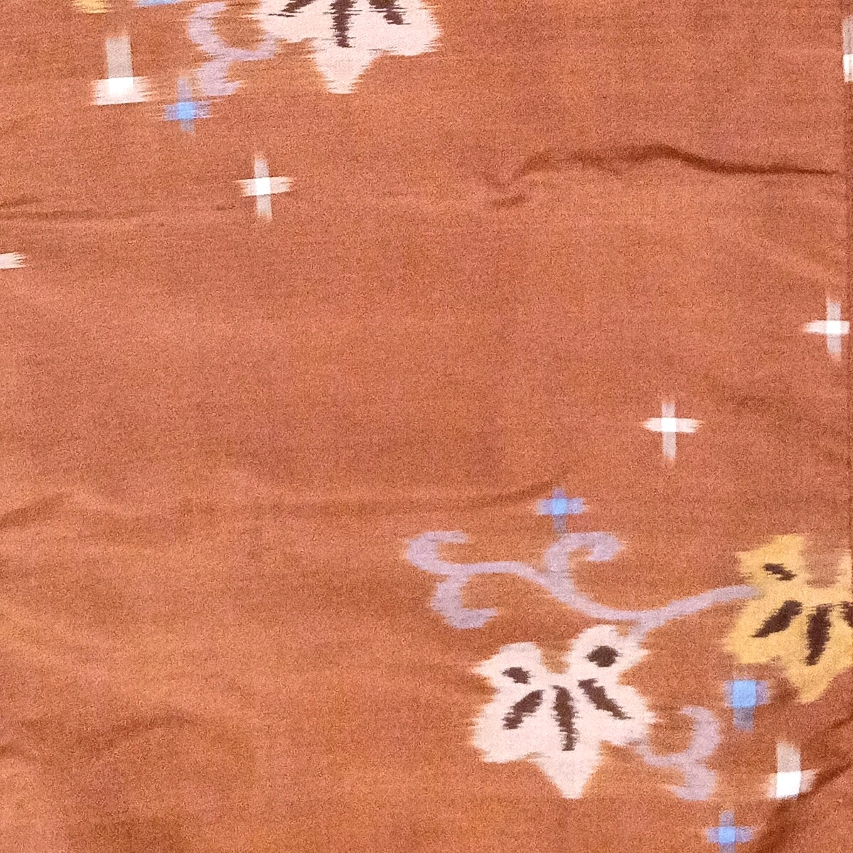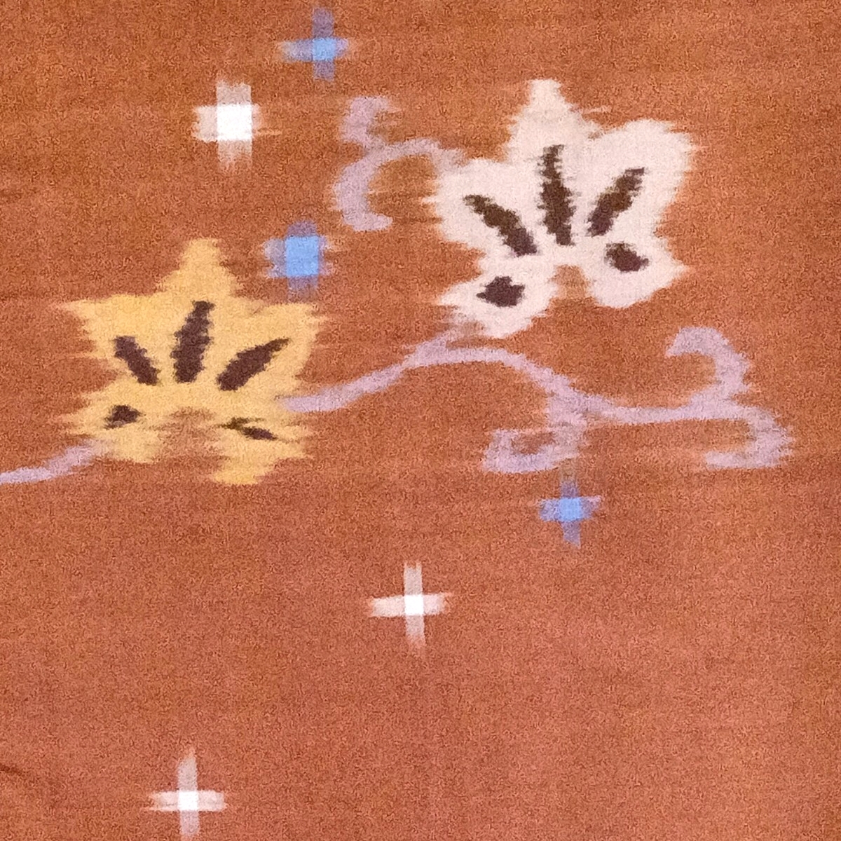 柿色(オレンジ系)に花・葉等が描かれており、レトロでとても可愛いらしいデザインです。