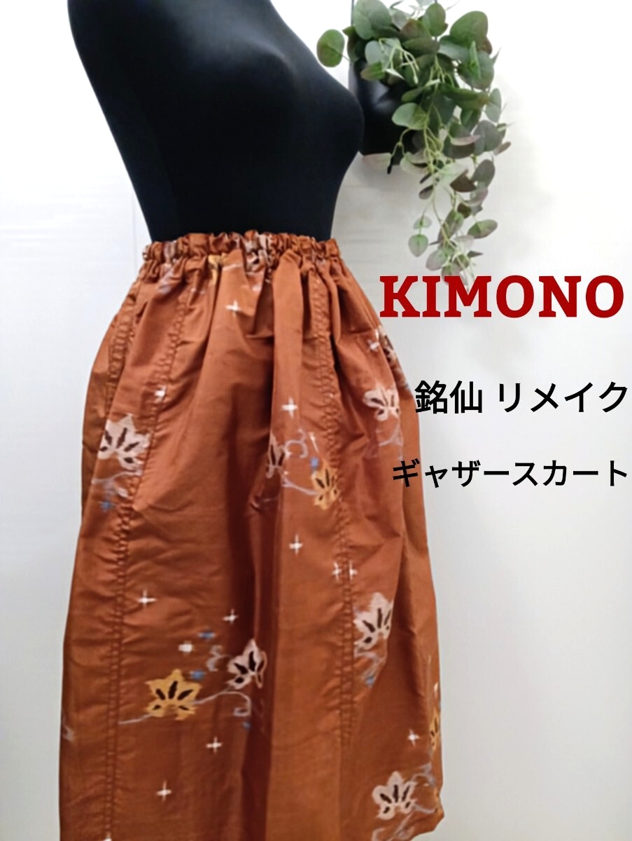 着物「銘仙」をリメイクしたハンドメイドのスカートです♪♪