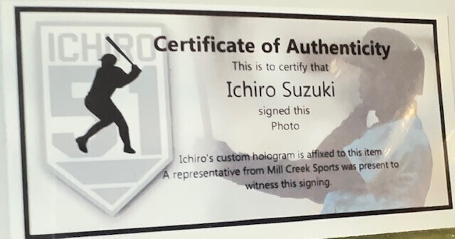 ミルクリーク証明書&イチロー直筆証明+公認ステッカー