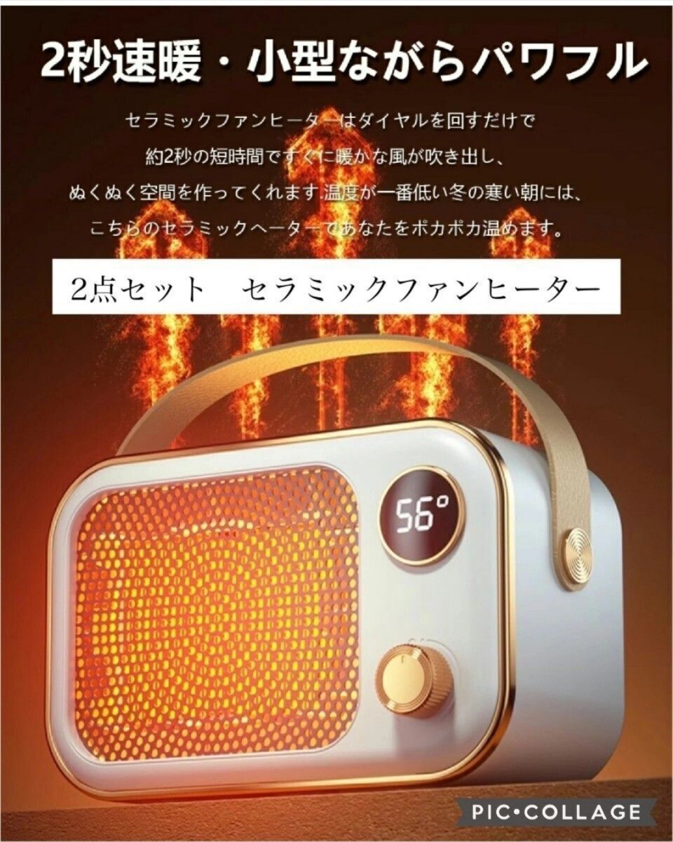 お得な2点セット セラミックファンヒーター2秒速暖 暖房 省エネ2段階温度調整 転倒自動オフ 安心安全のPSE認証済み 高性能 50ヘルツ