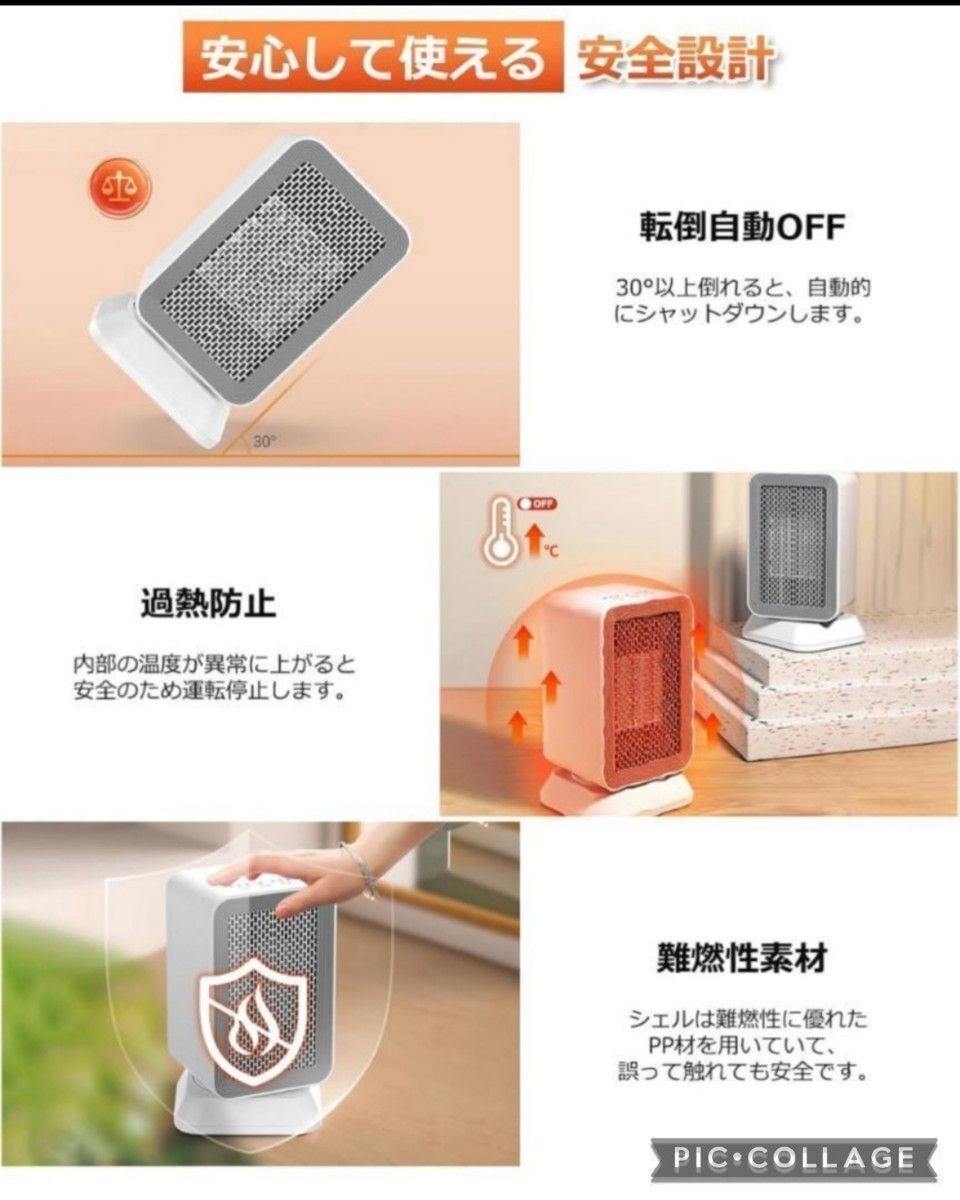 セラミックヒーター 小型 3秒速暖 3段階切替 首振り タイマー 過熱保護 静音転倒自動OFF 切りタイマー自動オフ機能 過熱保護