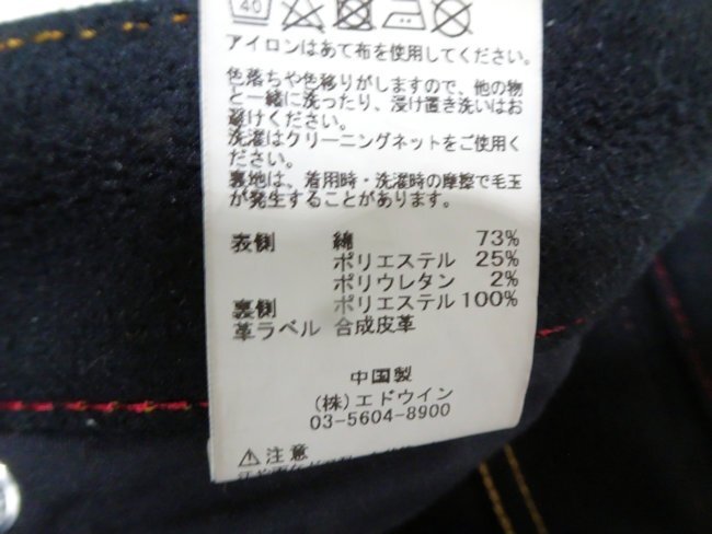 ■■商品詳細■■ メーカー : EDWIN /エドウィン 品名 : デニム パンツ 型番 : ME923W 表記サイズ : L 平置きサイズ: ウエスト40㎝/総丈105㎝/前股上34㎝/股下73㎝ 素材 : 綿73%・ポリエステル25%・ポリウレタン2% ※サイズはメジャーにての採寸となり若干の誤差が生じる場合が御座います。 ※掲載写真は蛍光灯等の光の反射により、多少色の違いがある場合が御座います。 【商品説明】 こちらの商品は”中古品”で御座います。 ◆商品状態 ・・・保管に伴う僅かなスレ、キズがある場合が御座います。 全体的に多少の使用感が御座います。 腰後ろの革ラベル割れやハゲが御座います。 裾の内側の色褪せが見受けられます。 デニム右太もも辺りに汚れが御座います。 画像にてご確認の程お願い致します。 特に特記する様な破損は御座いません。 記載事項をご確認、ご納得の上ご入札の程お願い致します。 ☆店頭でのお引取り大歓迎☆ 別途:この他にも“色々”出品しています 【ここクリック】でご覧下さいませ。 | ||