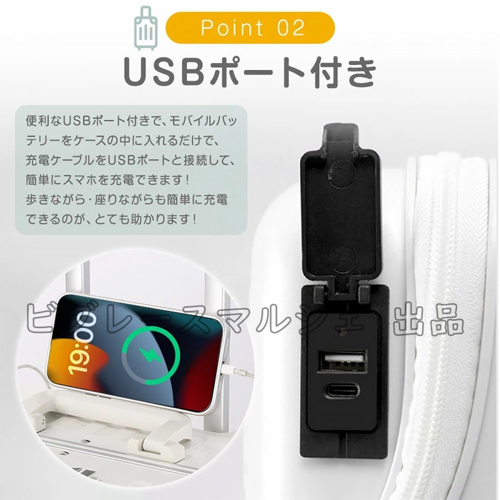 スーツケース 機内持ち込み 軽量 キャリーケース Lサイズ USBポート カップホルダー フック搭載 旅行 69L フロントオープン hw1368.wt.L