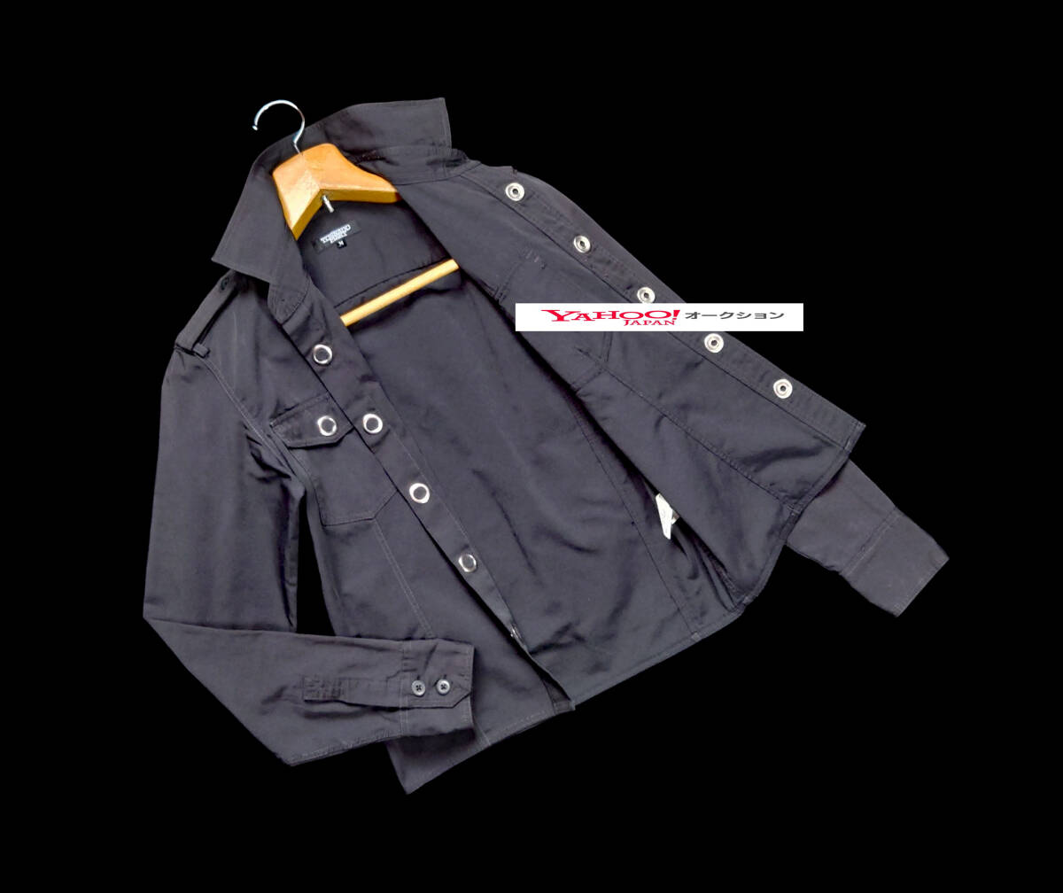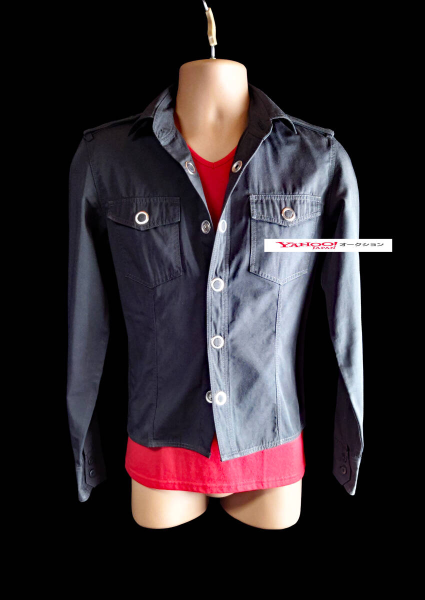 黒色の生地、大き目のスナップボタンのメタルリングが輝くオシャレなお品です。