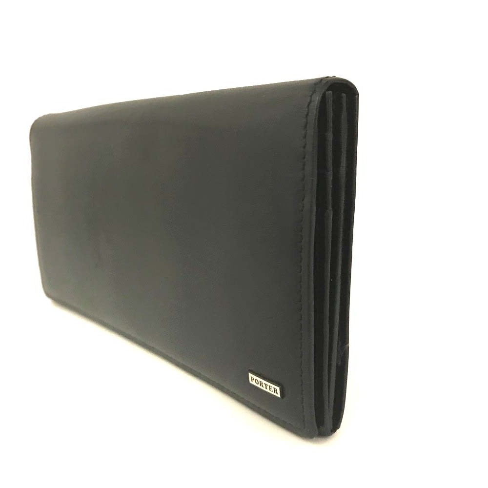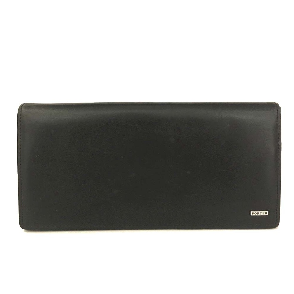 1円 美品 PORTER ポーター 吉田カバン レザー 二つ折り財布 長財布 ブラック /ZX0623