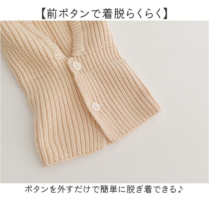 商品説明 | ・・【寒い日の外出も暖かい】 ・頭から首回りまでしっかりと寒さから守ってくれるフードウォーマー〇 ・【前ボタンで着脱らくらく】 ・ボタンを外すだけで簡単に脱ぎ着できる♪ ・【やわらかなニット素材】 ・肌触りが良く伸縮性もあり心地よくフィット◎ |