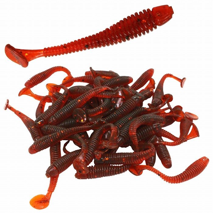 ソフト ルアー 50個 ワーム セット 赤 レッド 2インチ 5cm/50mm シャッドテール プルプル 震える ジグヘッド スプリット