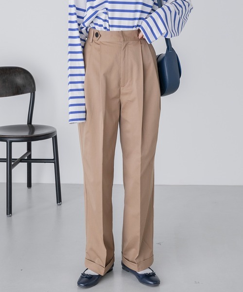 キーワード:チノパン レディース スタンダード ストレート ハイウエスト フルレングス 無地