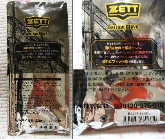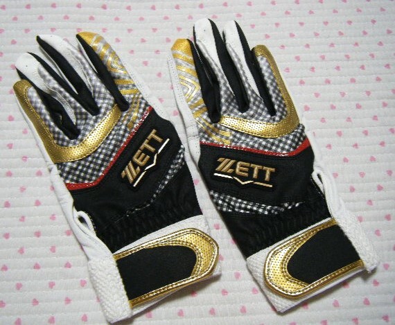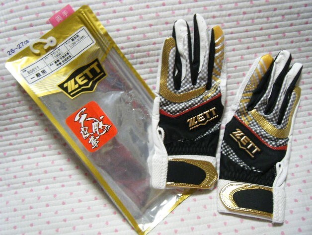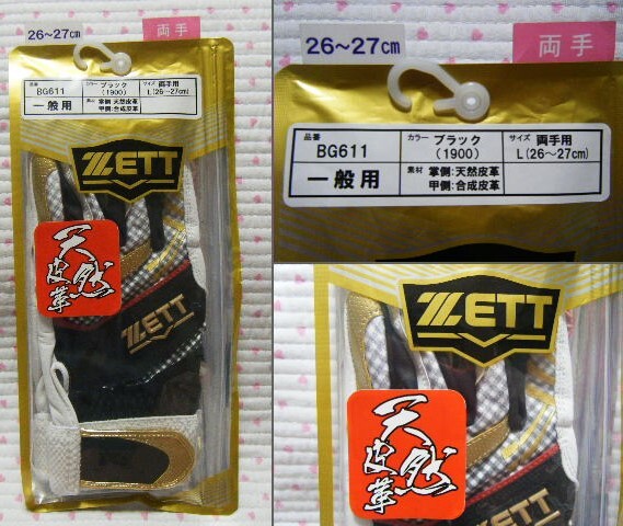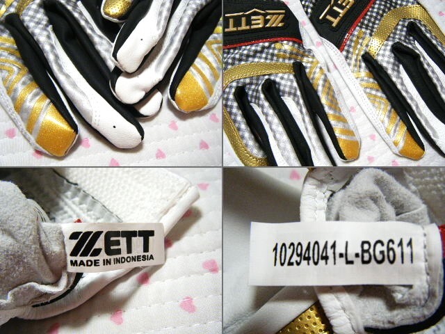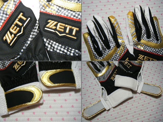 本体は天然皮革(羊革)、合成皮革素材。   掌部は高級感のあるスムースシープ(羊革)を使用。  甲部は昇華プリントとシリコンを組み合わせた合成皮革素材を使用し、コストパフォーマンスに優れた野球用高性能バッティンググローブ・両手袋。    @ プレーヤーの手と一体感を高め、優れたフィット感を実現したアイテム。     親指部は二重(当て革) 構造で補強し、耐久性を追求。   洗濯可能。      モデル名   ZETT  BATTING  GLOVE       表記カラー  ブラック (1900)  一部ゴールド色使用