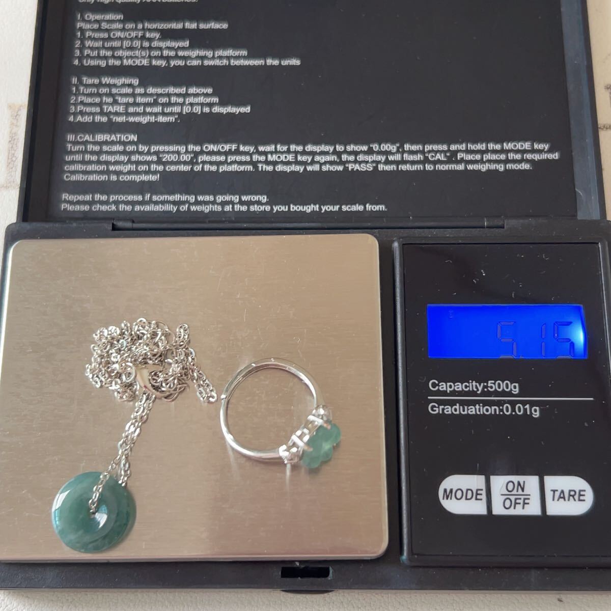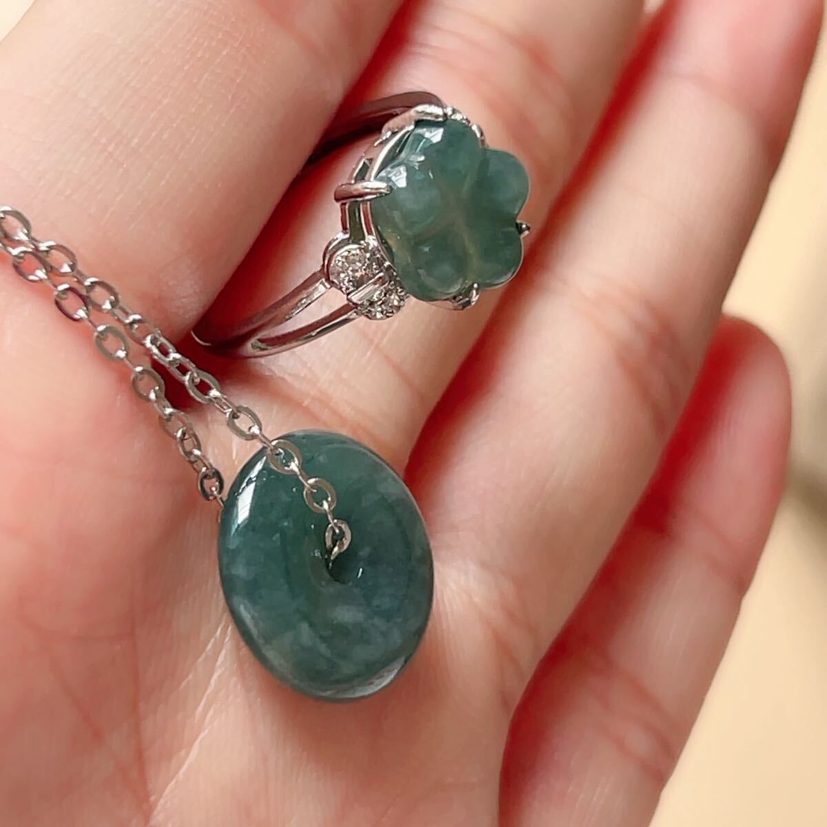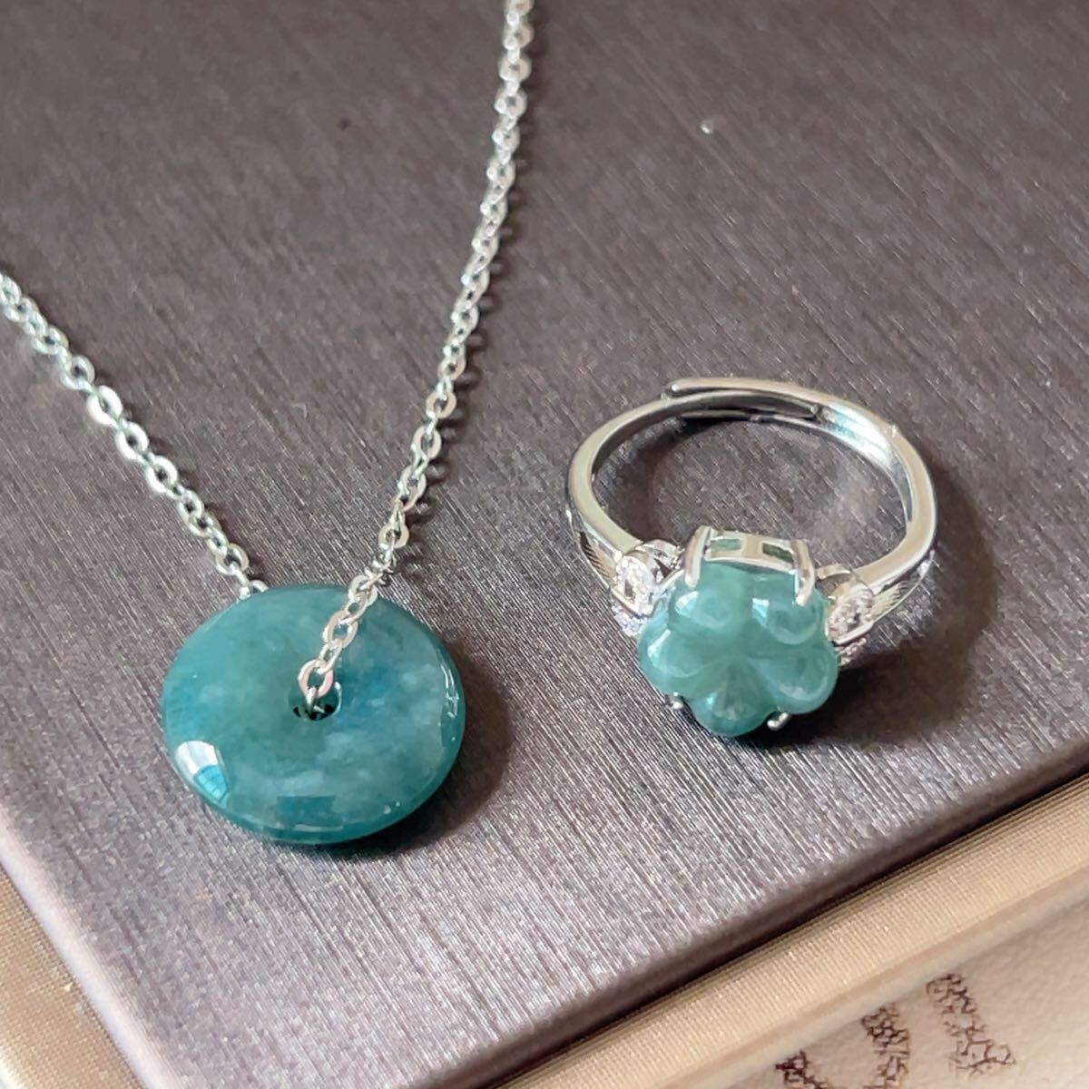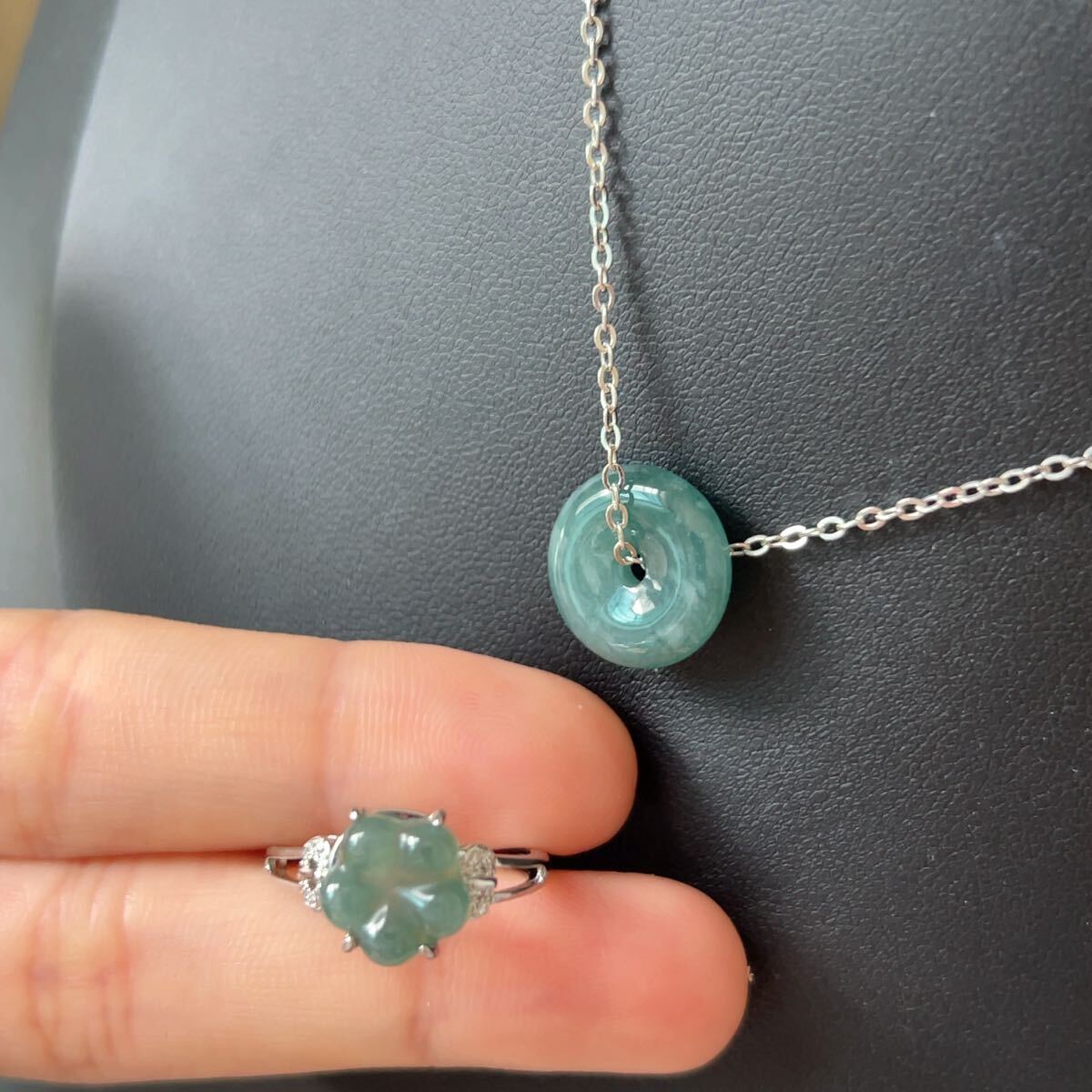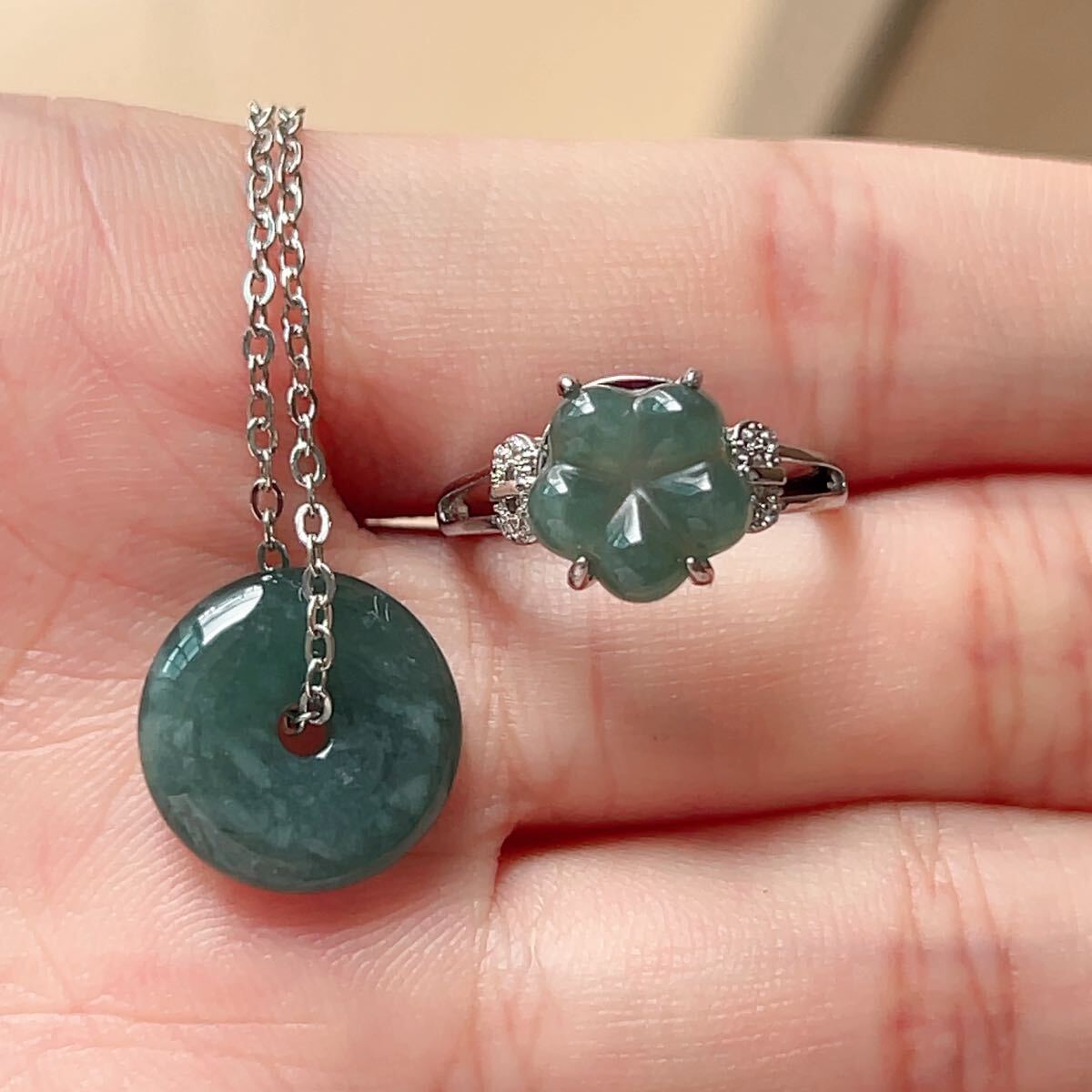 ◇ジェイド(本翡翠)・ヒスイ◇ネックレスペンダント+リング(指輪)計2点セット◇巾着袋付き◇プレゼントにも 036S92916