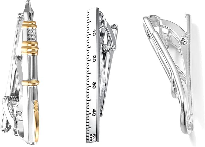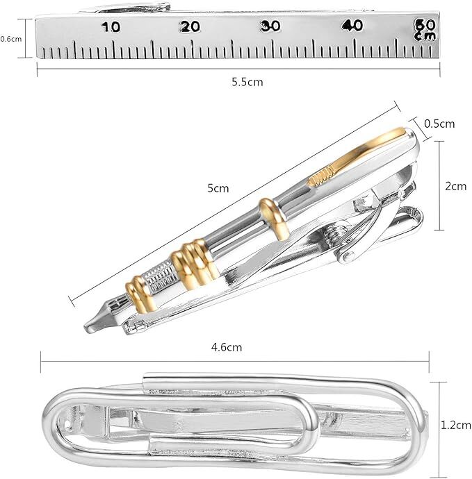 万年筆、メジャー、クリップをモチーフにした遊び心あふれるネクタイピン3本セットです。