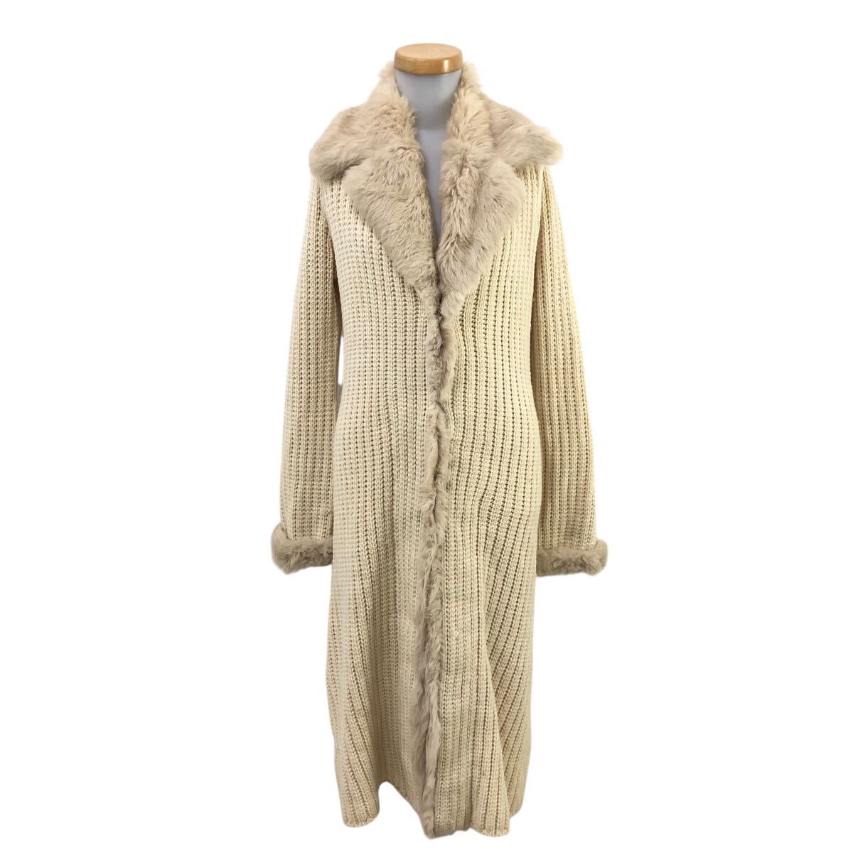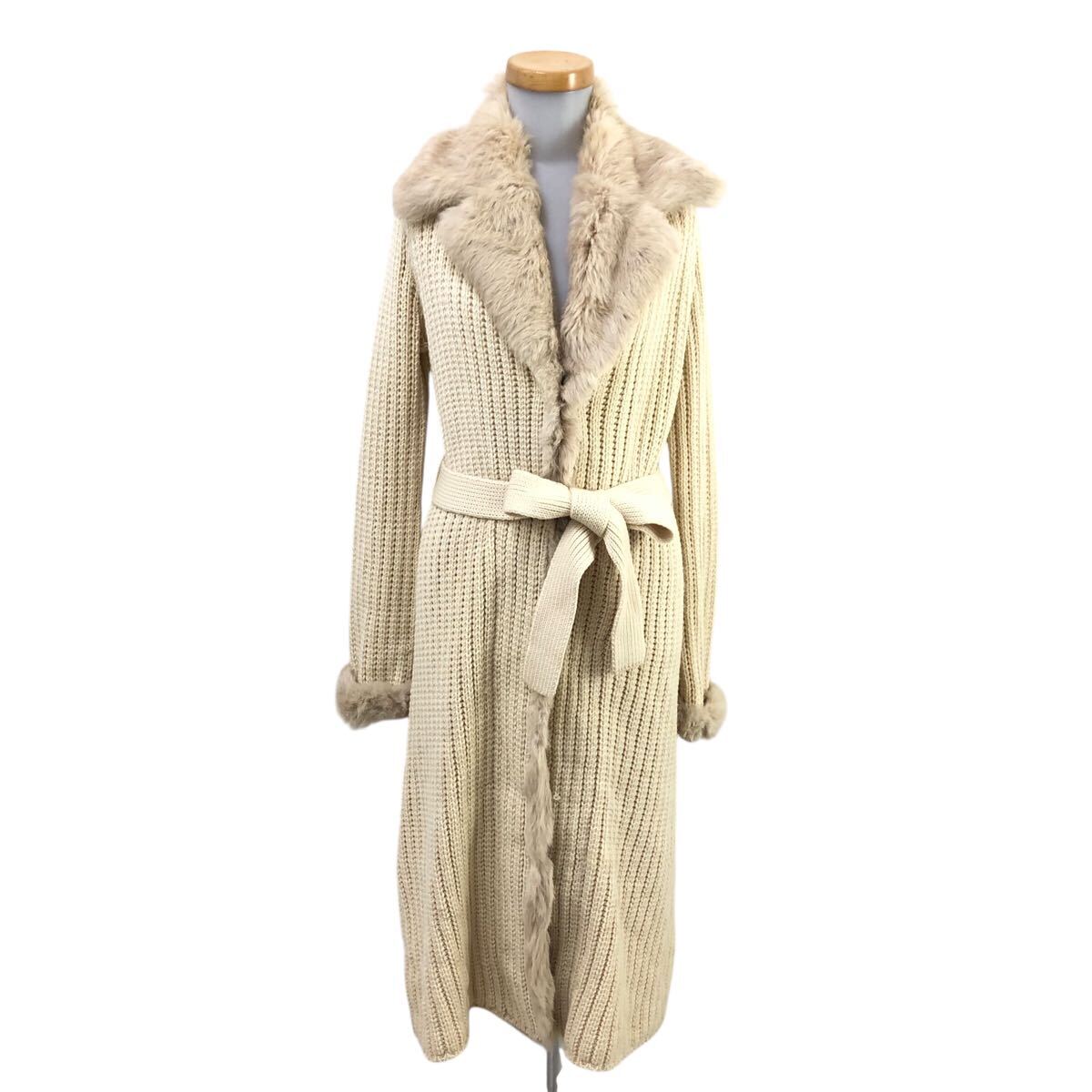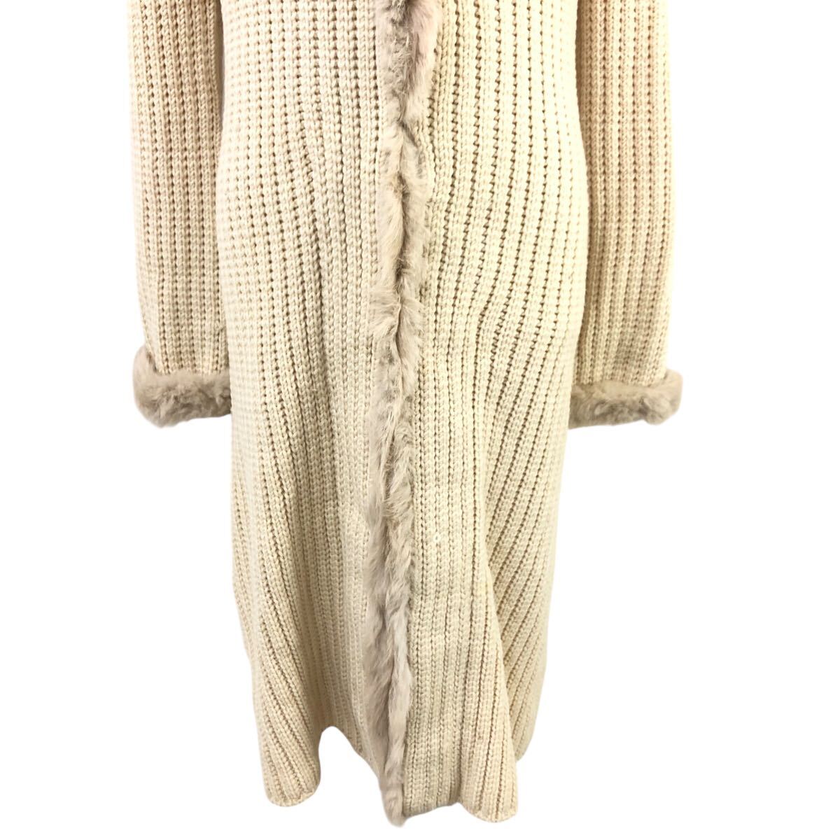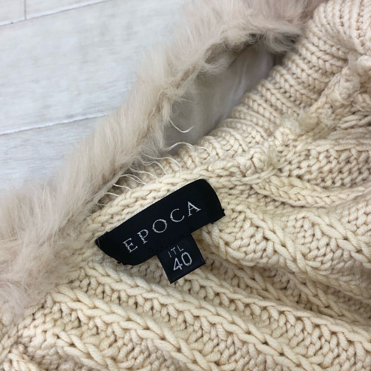 9m656-78 EPOCA エポカ ラビット ファー 襟 トリミング ロング ニット コート カーディガン 上着 羽織り アウター ベージュ レディース 40
