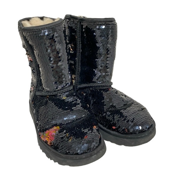 アグ UGG ショートブーツ 22 1094982 クラシック ショート シークイン ムートン ダークネイビー×黒 レディース 靴