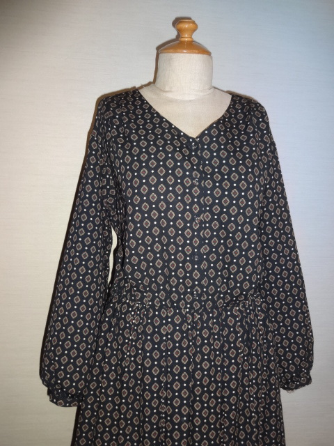 黒レトロ柄上身ボタン開きW切替ロングOP
