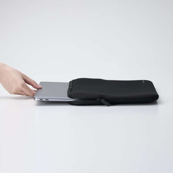 | ●柔らかく伸縮性に優れたストレッチ素材を使用し、 ノートパソコンを傷や汚れから守るインナーバッグ | |