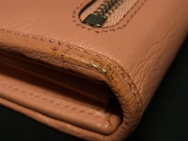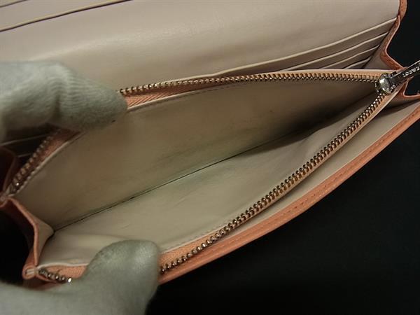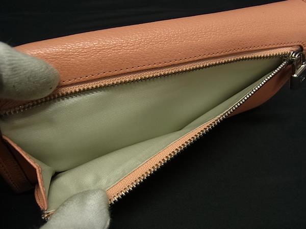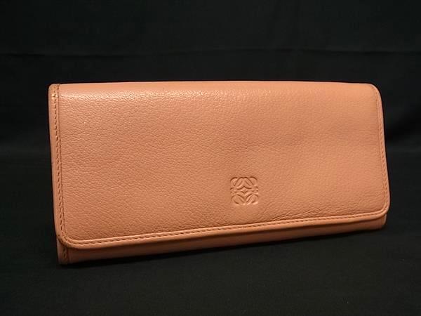 1円 ■美品■ LOEWE ロエベ アナグラム レザー 二つ折り 長財布 ウォレット 小銭入れ 札入れ カード入れ サーモンピンク系 FM9977
