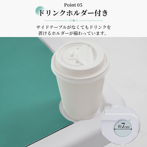 • 【ドリンクホルダー付き】サイドテープルがなくてもドリンクを置けるホルダーが備わっています。約7cm。