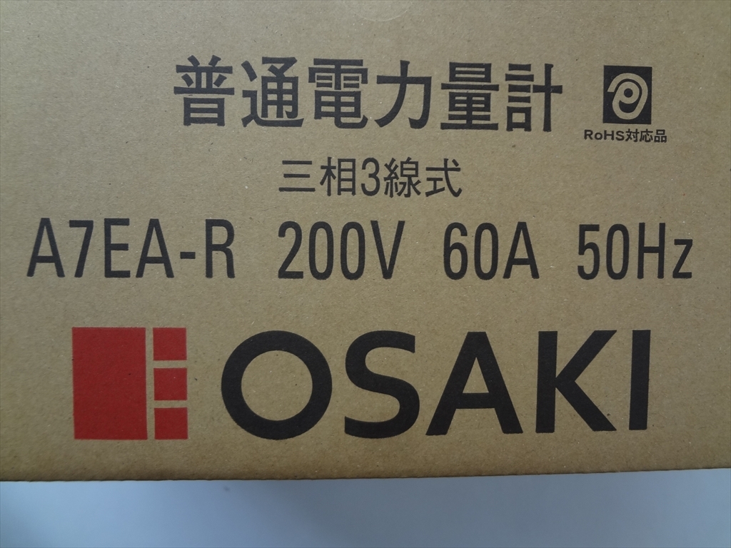 大崎電気工業 A7EA-R 200V 60A 50Hz 東日本 三相3線式 電力量計 検定付です。