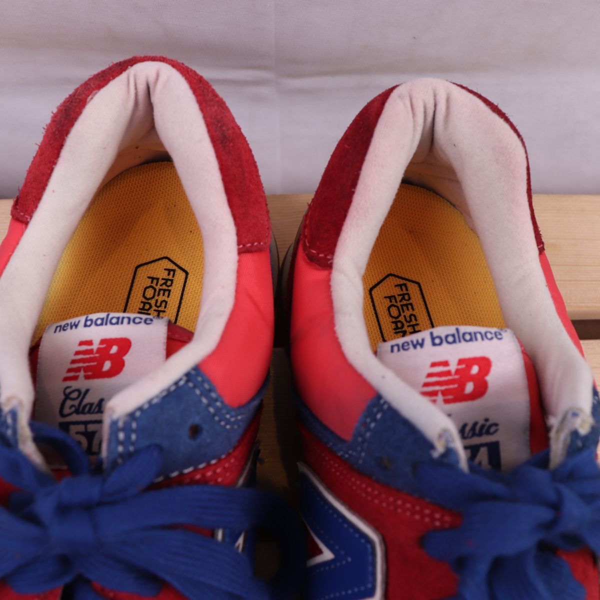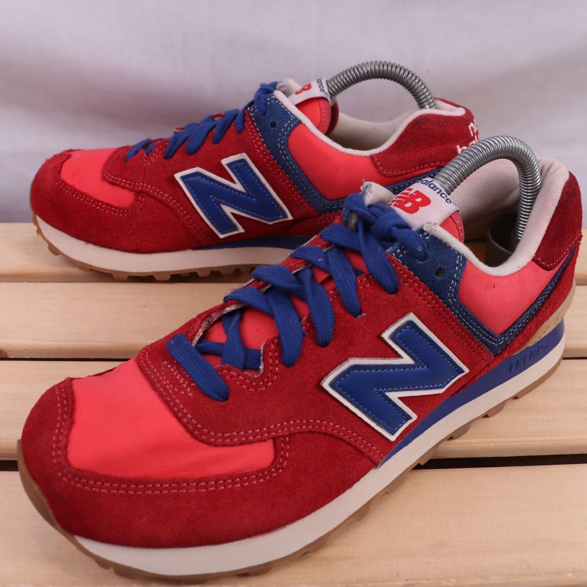 z2147【574】ニューバランス US7.5 25.5cm/赤 レッド 青 newbalance メンズ スニーカー 中古