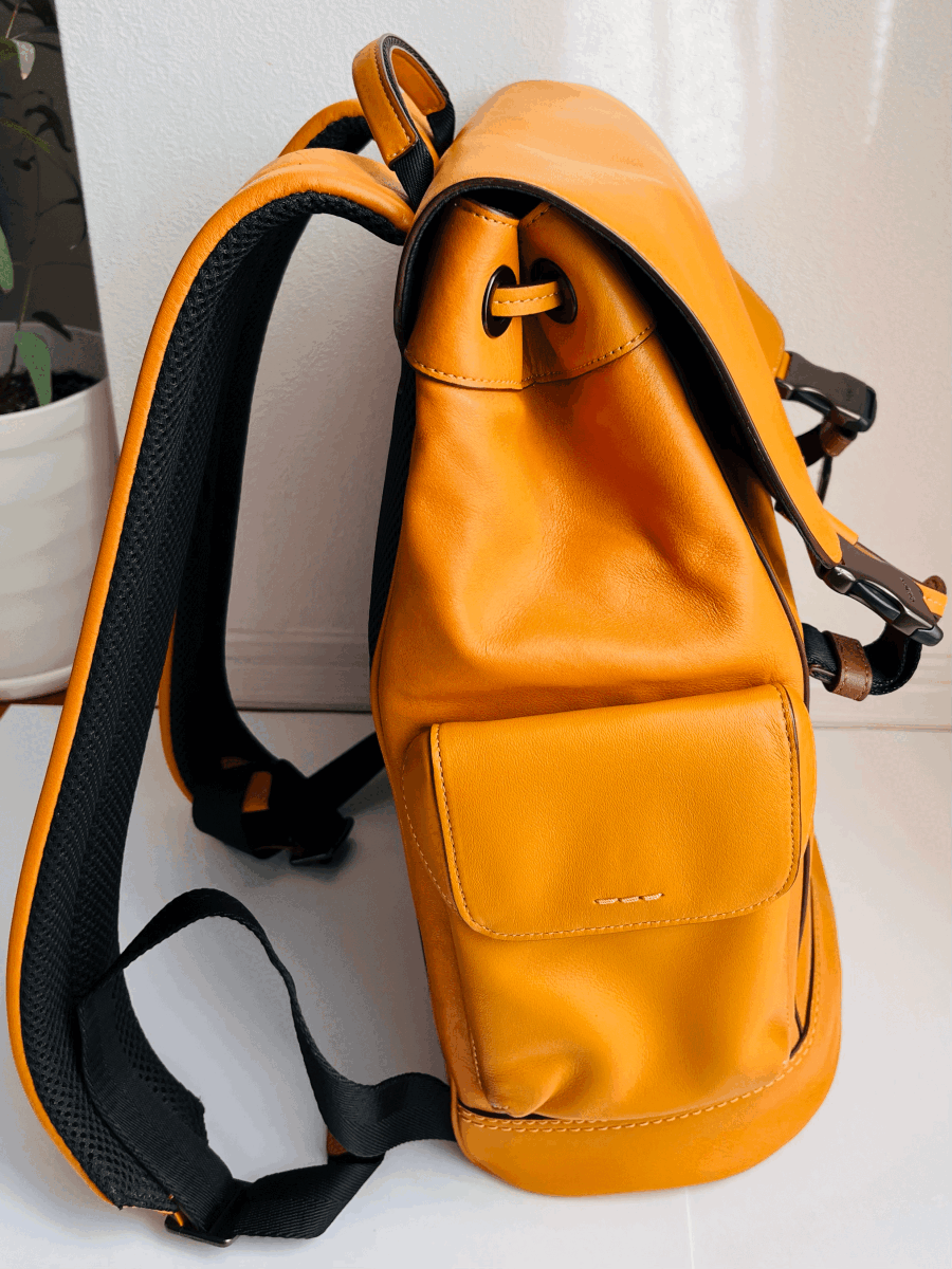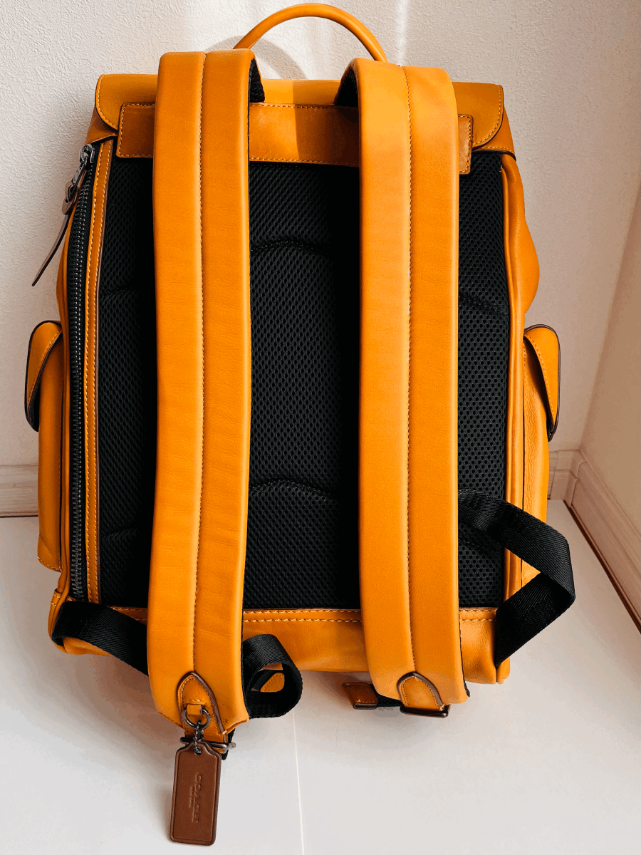 未使用 COACH コーチリュックサックリビングトン バッグパック マスタード色 レザーメンズ レディース兼用ノートPC収納可