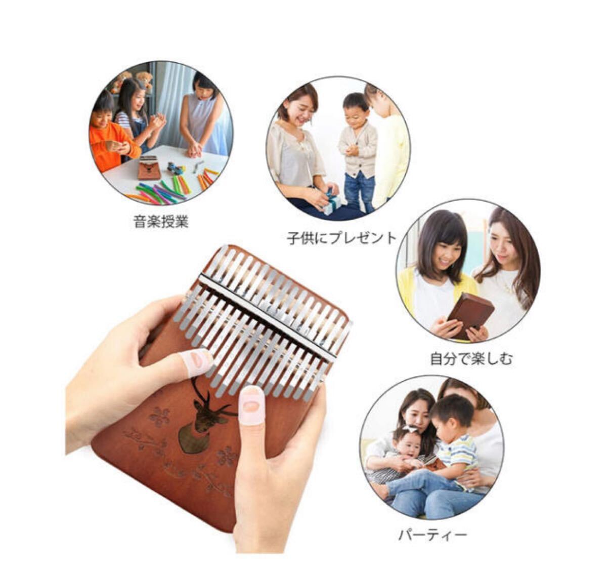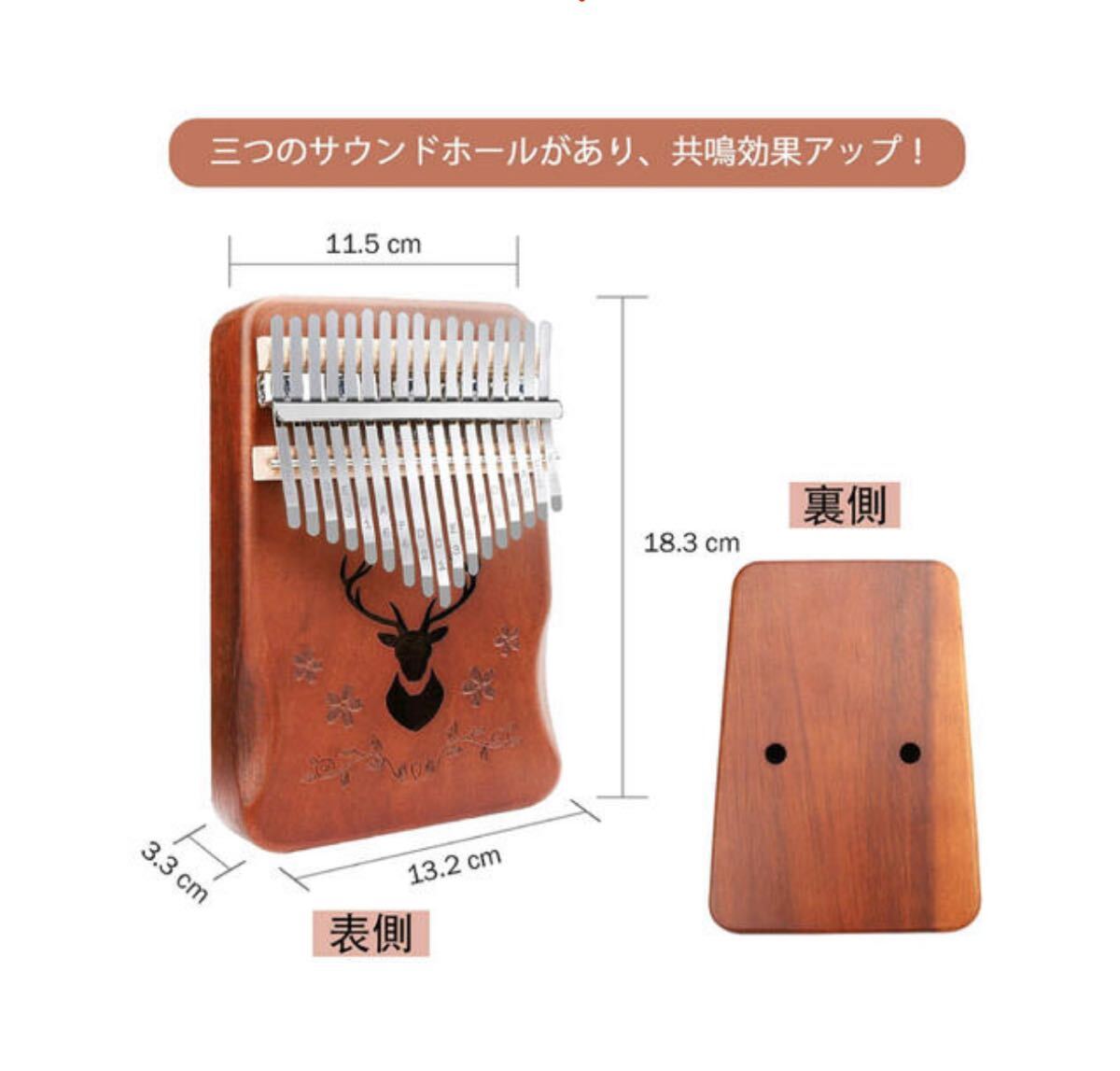 【マホガニー&17キー】カリンバの響板が高品質なマホガニーで、鍵盤が鉱石金属で作られているので、手触りがいいし、音も他の材料のカリンバよりきれいです。天然木材なので、少しにおいがありますが、だんだん消えるので、心配する必要がありません。鍵盤は17キーで、10キーのより演奏できる曲が多い、音もきれいです。