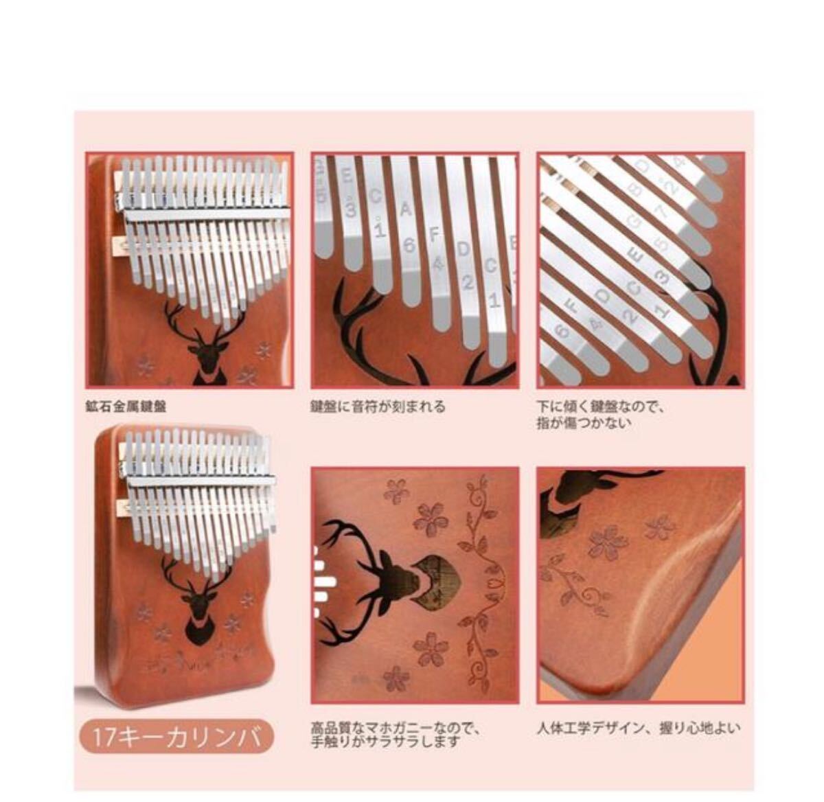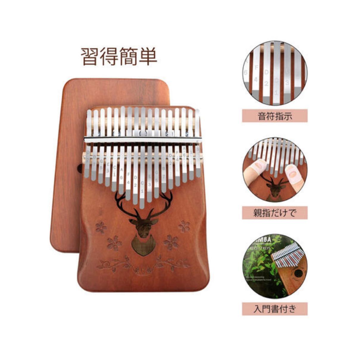 【癒される音色&ストレス解消】17キーカリンバ楽器の音色は風鈴やオルゴールのようです。カリンバ共鳴箱には三つのサウンドホールが付くので、共鳴効果がアップし、流れ出す音色もきれいになります。カリンバの音を聞くと、心が落ち着き、一日中のストレスも解消されます。