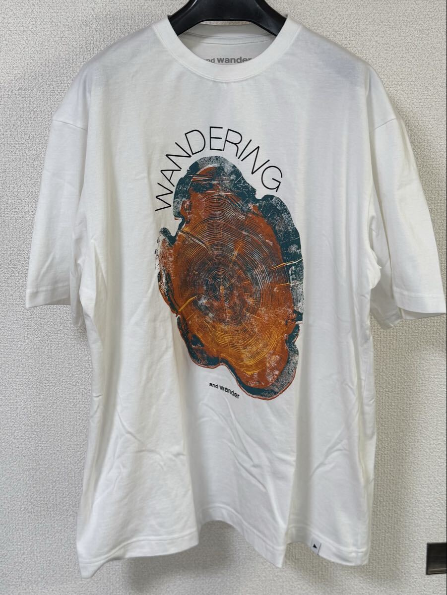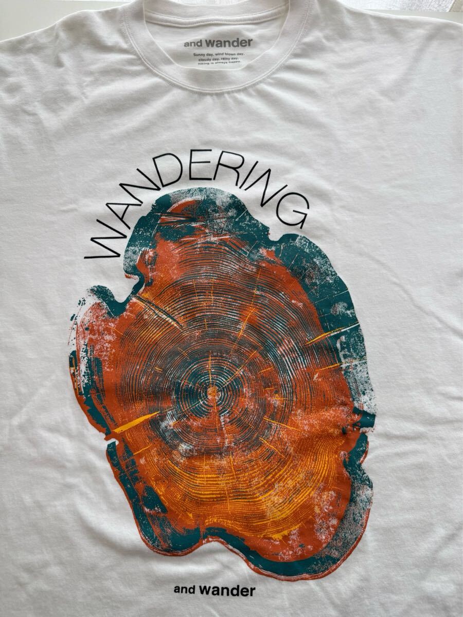 and wander アンドワンダー WANDERING printed T WHITE Tシャツ XLサイズ USED 25秋冬モデル 今シーズン ホワイト 白
