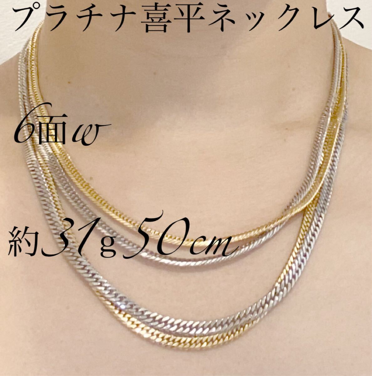 プラチナ製の6面W喜平ネックレス、約31g、約50cmの長さ。