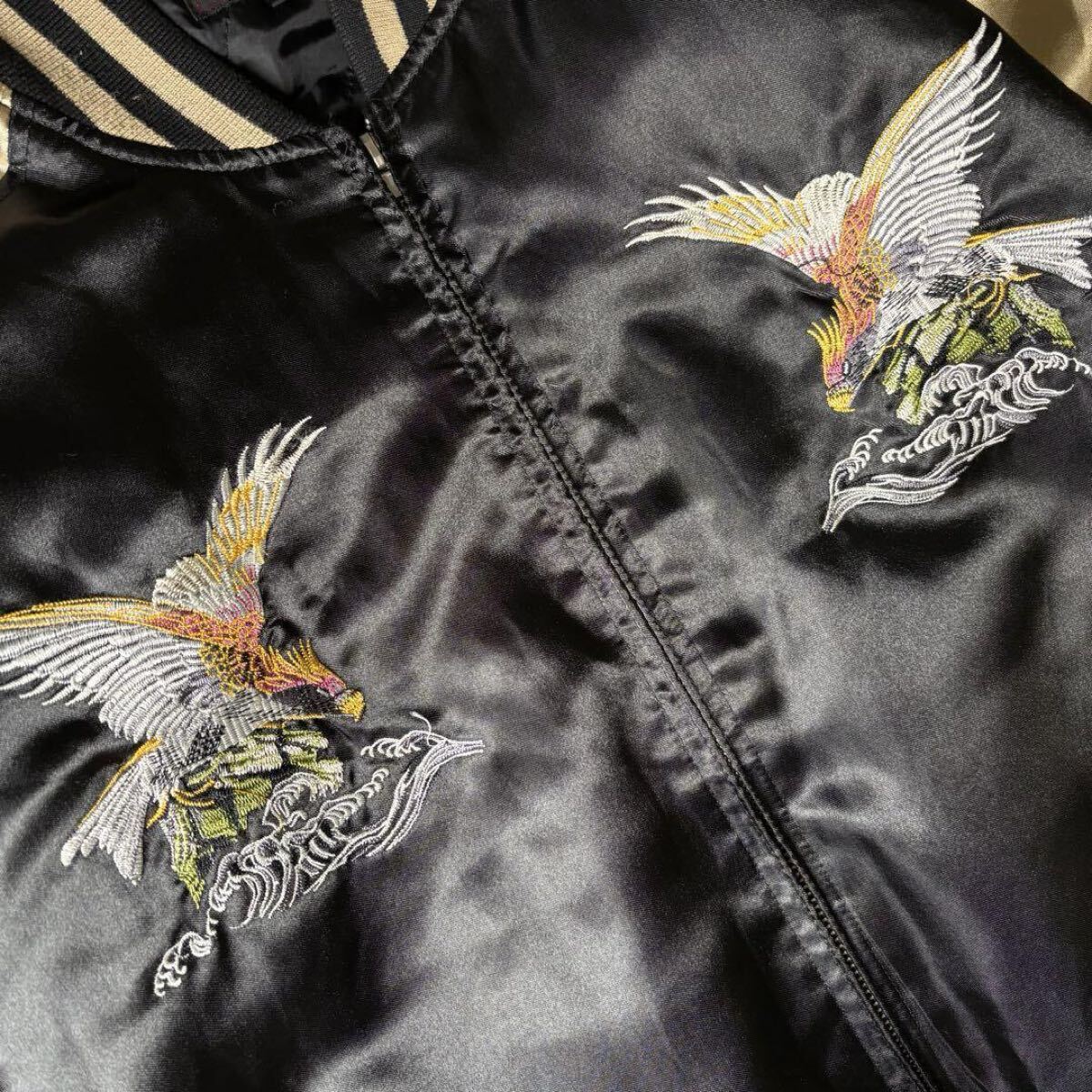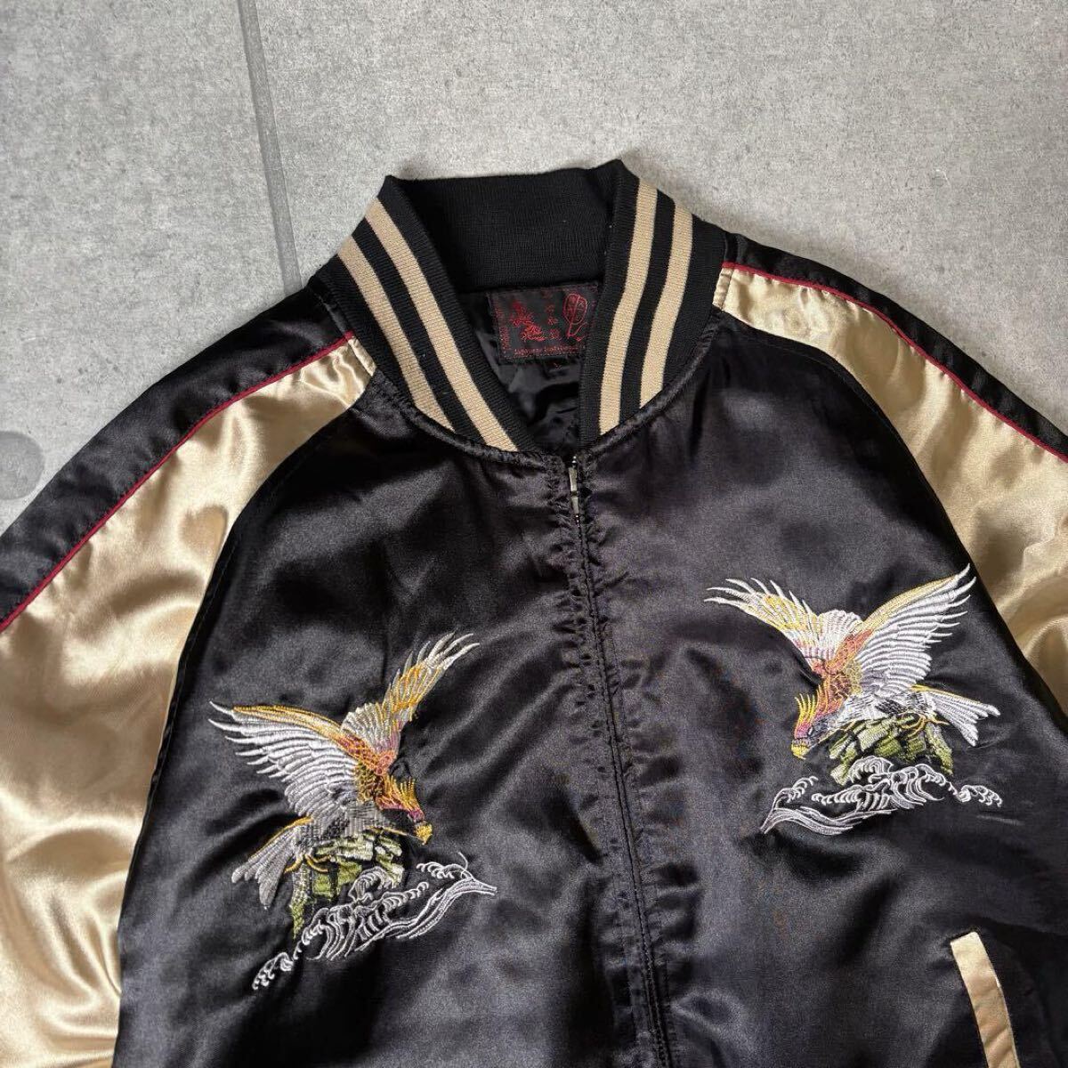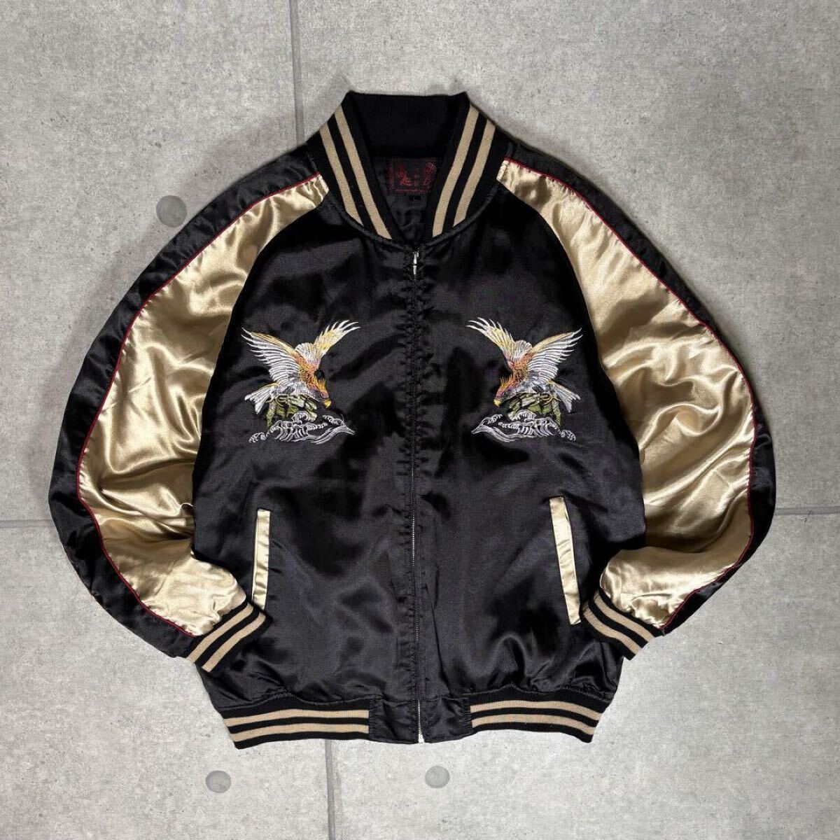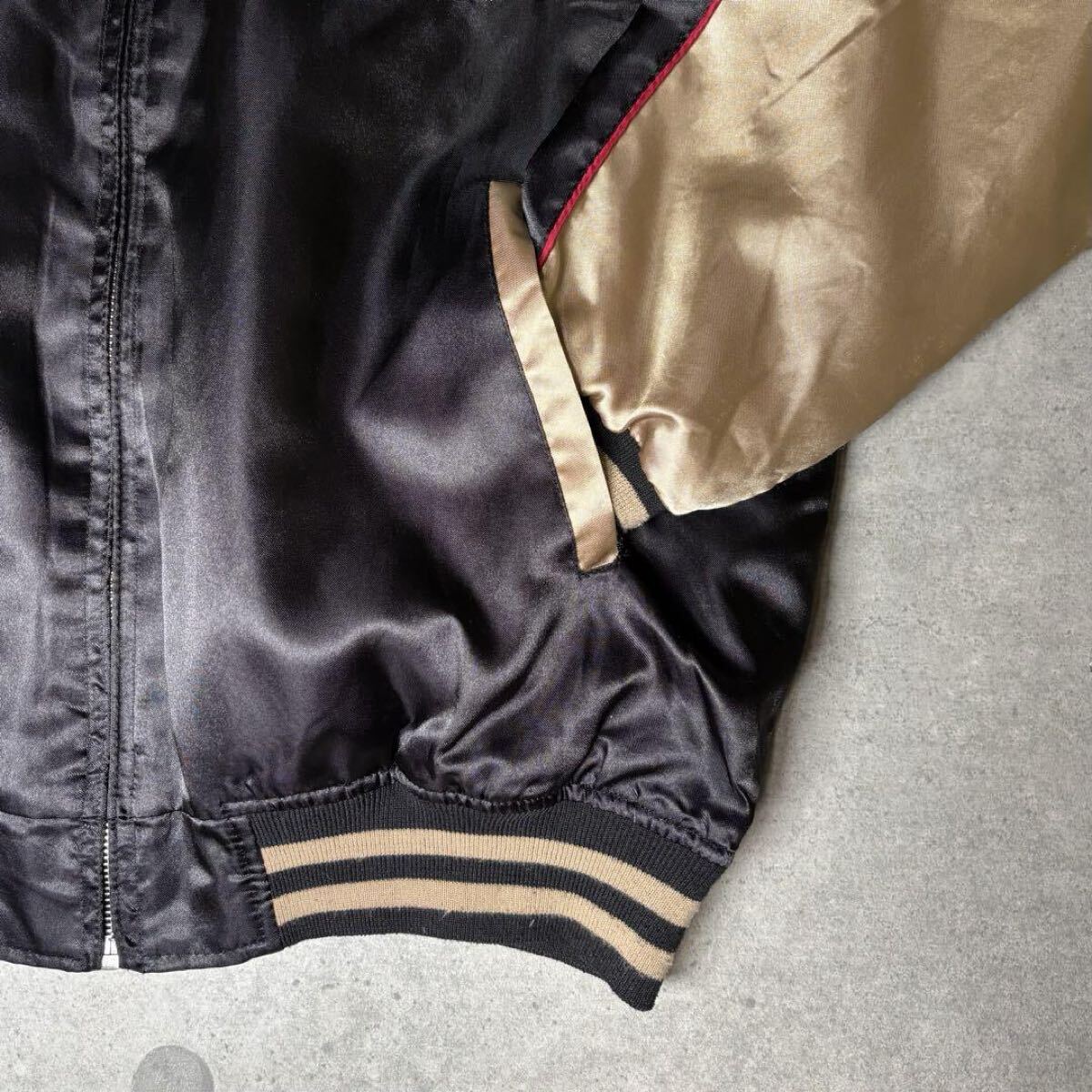 ・ブラックボディにゴールドのアームという、とても格好良い良配色のスカジャン