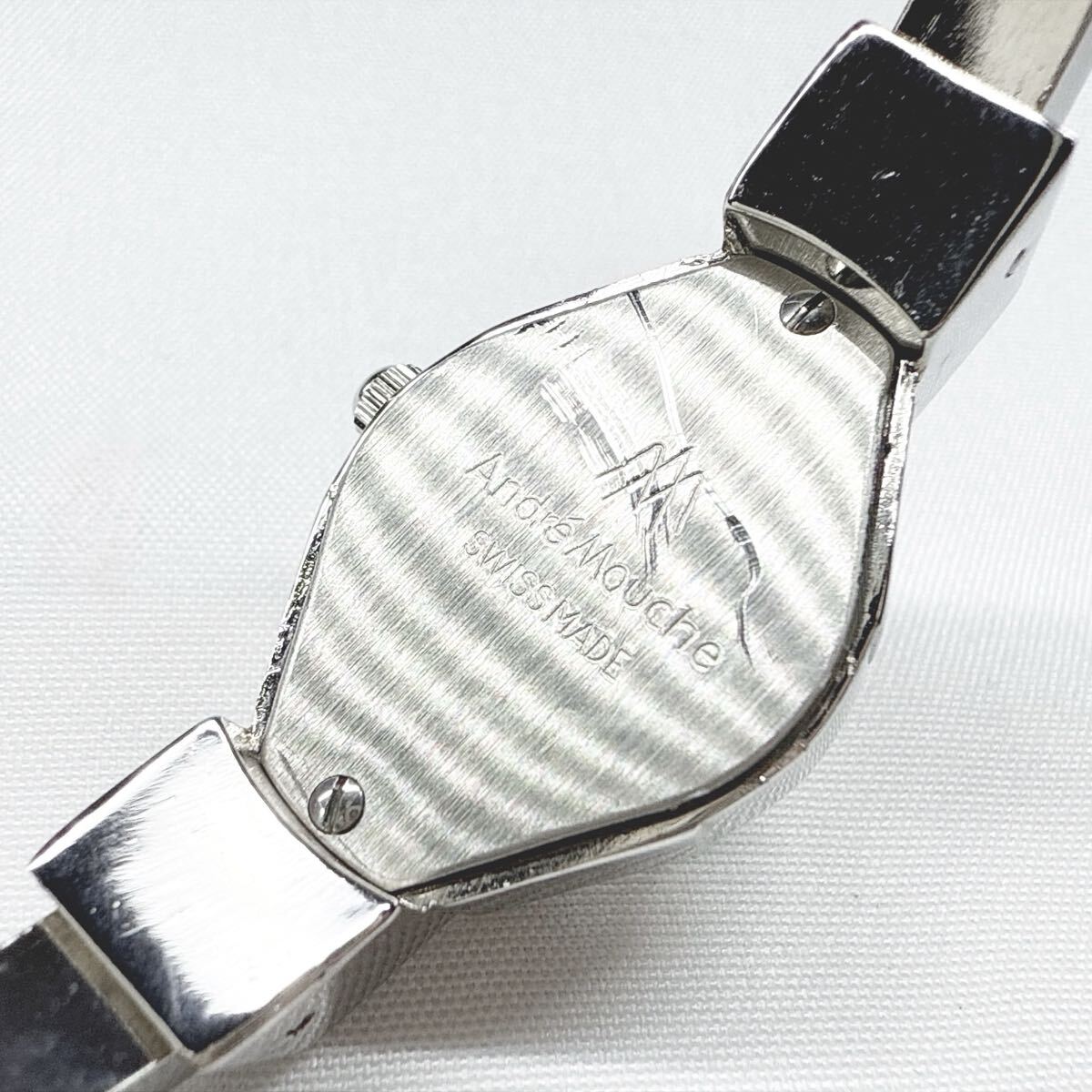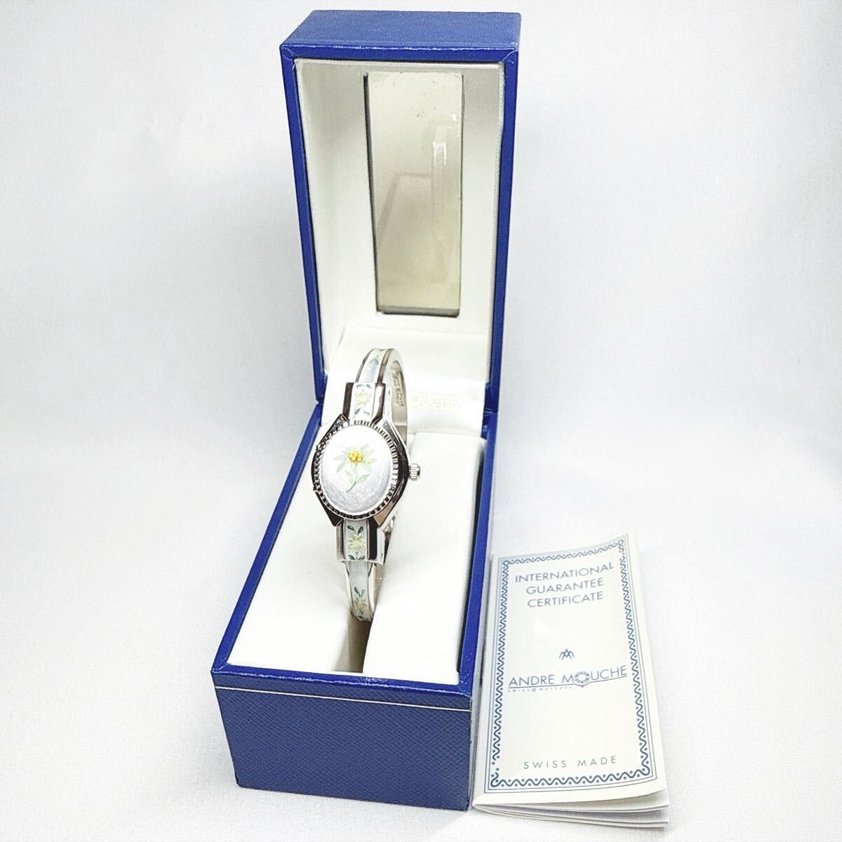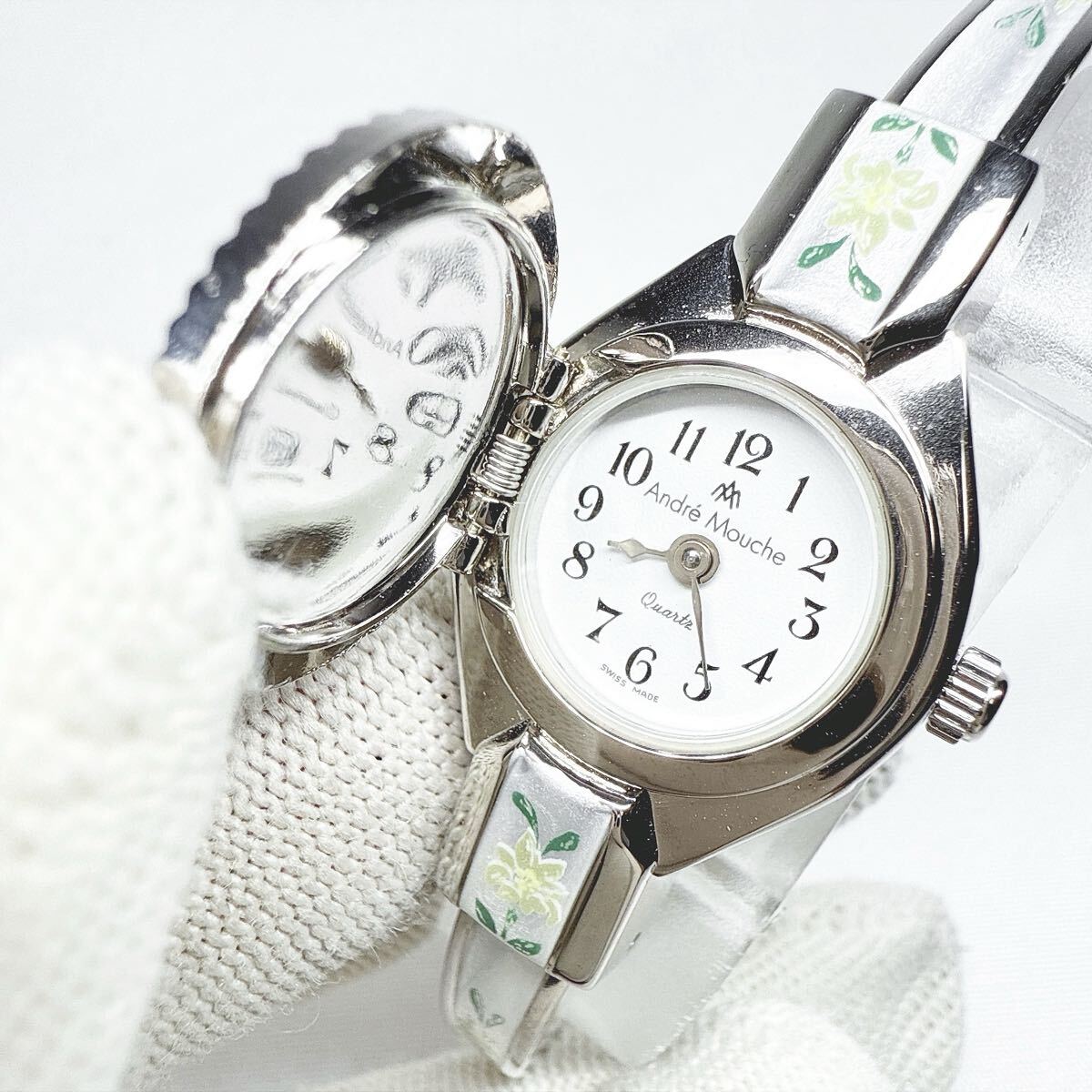 稼動品 Andre Mouche アンドレムッシュ バングルウォッチ クオーツ 花柄 シルバー スイス製 レディース アンティーク 付属品有り